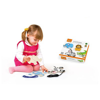 Celotna igrača je izdelana iz lakiranega lesa in pobarvana z nestrupenimi barvami, ter izpolnjuje varnostne standarde (EN71 in ASTM).