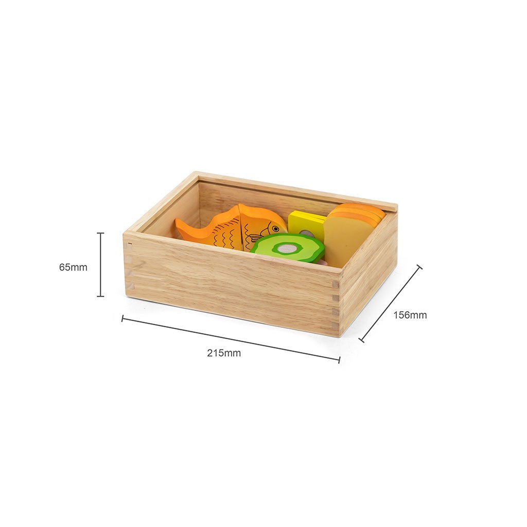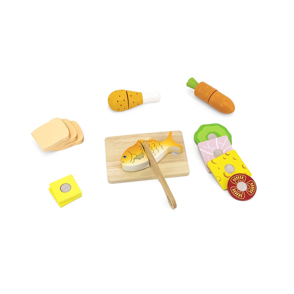 Lesena kuhinjska učna igrača podjetja Viga je odlična igrača za razvoj kulinaričnih in ročnih spretnosti vašega otroka. Skupek vsebuje desko za rezanje in nož, kar otroku pomaga razumeti, kako se hrana reže na koščke, hkrati pa razvija koordinacijo roka-oko. Vsak kos hrane ima velcro traku za enostavno sestavljanje in razstavljanje.