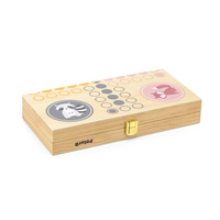 1 igralna plošča, ki je v zapirajoči leseni škatli.