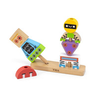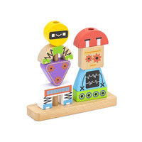 Stenske sestavljanke - Roboti podjetja Viga so idealno darilo za otroka, ki spodbuja njegov razvoj in olajša učenje. Otroci morajo na podlagi priloženih kartic - predlog, razporejenih po težavnosti, sestaviti robote v različne konfiguracije. Prva raven težavnosti obsega 6 kartic, druga raven težavnosti prav tako 6 kartic z zahtevnejšo razporeditvijo kock, tretja raven pa obsega 10 kartic, na katerih so označeni le obriski kock. Malčki imajo možnost ustvarjati po svoji domišljiji in si iz razpoložljivih elementov oblikovati svoj lasten videz robotov.