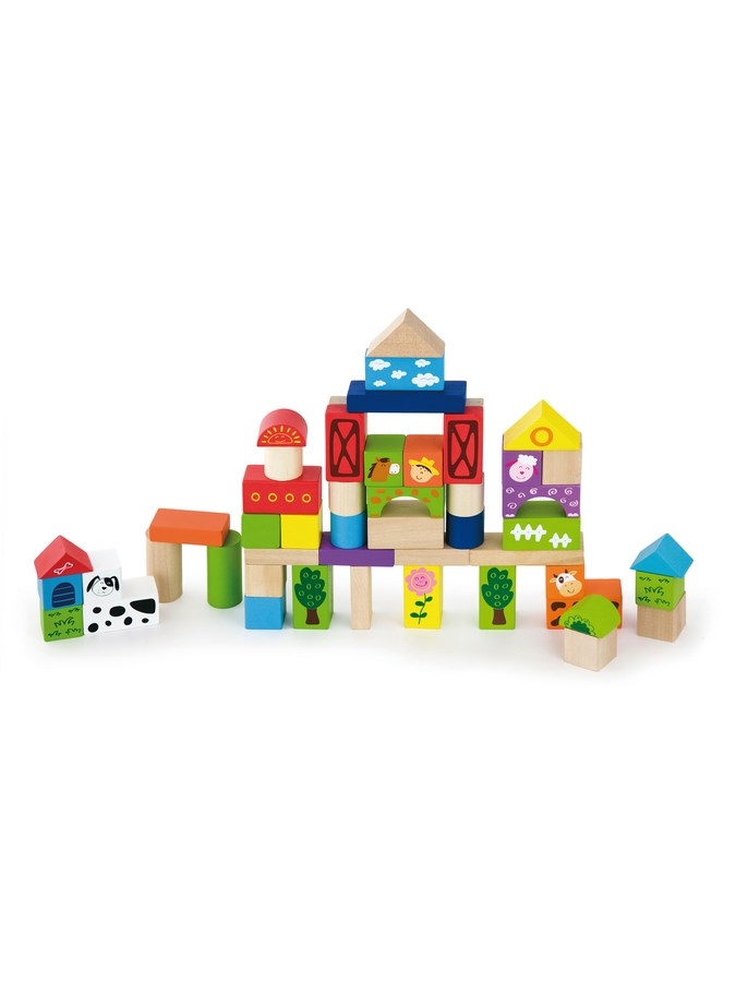 Lepo, pisane, lesene kocke v vedru Viga Farma prinašajo 50 čudovitih pisanih delov tudi za najmanjše graditelje. Gradbena sestavljanka bo trajala dolgo časa in vašemu otroku nudila mnogo let zanimive in ustvarjalne igre. Kocke imajo različne oblike, velikosti, čudovite barve in slike z motivi živalskega vrta. Tu boste našli oblike, kot so kocka, pravokotnik, trikotnik, valj, pravokotnik, most in še več. Znotraj pakiranja je navodilo za sestavljanje različnih zgradb, mest in objektov, ki spodbuja vašega otroka k ustvarjalni zabavi. To vedro s kockami služi tudi kot motorični pripomoček, ki otroke uči prepoznavati oblike in ravnati s kockami. Igrača pomaga izboljšati ročno spretnost in zmožnost, uči otroka prepoznavati oblike in barve, aktivira ter razvija smisel za opazovanje. Igrača je izdelana iz lakiranega lesa. Naša prednost je varnost in kakovost naših izdelkov, zato barve, uporabljene na igračah, niso strupene in ustrezajo varnostnim standardom (EN71 in ASTM). Primerna je za otroke od 2. leta starosti. Igrača je odlična izbira za čudovito darilo za naše najmlajše.