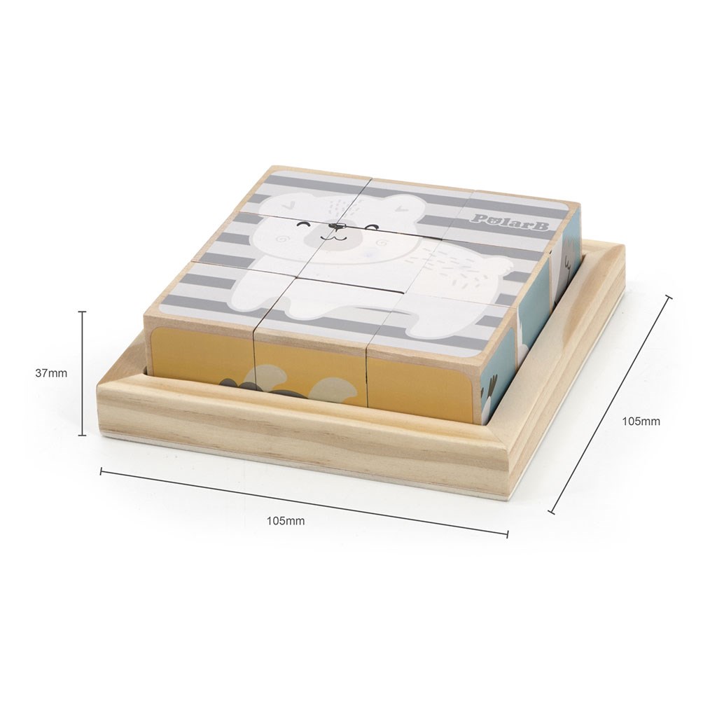 Razvijajte veščine svojega otroka s klasično igračo iz lesenih blokov. Z 9 bloki bo vaš otrok na leseni podlagi ustvaril 6 slik, ki prikazujejo te živali: zebro, medvedka koalo, medveda, slona, piščanca in ježa.