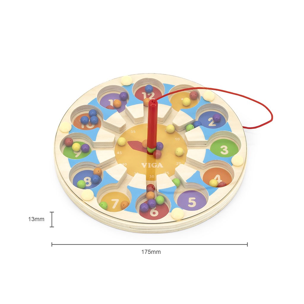 Magnetni labirint podjetja Viga je idealno darilo, ki bo razveselilo vsakega otroka. Na leseni podlagi je dvanajst krogov, ki ustrezajo uram, v katere je treba s pomočjo magnetnega svinčnika pravilno usmeriti ustrezen število kroglic.
