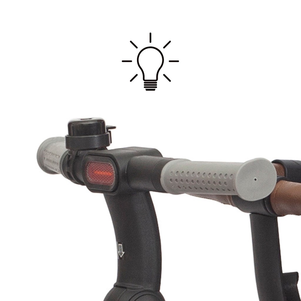 Twinkle je opremljen z nastavljivim ročajem, funkcijo prostega teka, zavoro, varnostnimi pasovi s zaščitniki ter udobnim trojnim naslonjalom in zagotavlja popoln nadzor in udobje za otroka in starše. Njena lahka, a trpežna jeklena konstrukcija, kolesa s penasto oblogo in krogličnimi ležaji, zložljiva konstrukcija ter praktične lastnosti, kot so mrežasta streha, LED lučka, nosilec za pijače in dva shranjevalna zaboja, jo delajo popoln izbor za vsako priložnost – v mestu, na sprehodu ali izletu. Po odstranitvi ročaja, ograj in strehe lahko Twinkle uporabljate kot klasično trokolko.