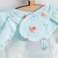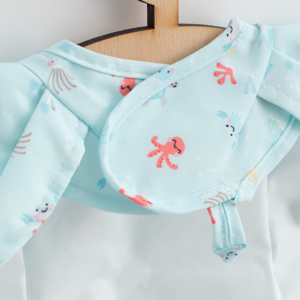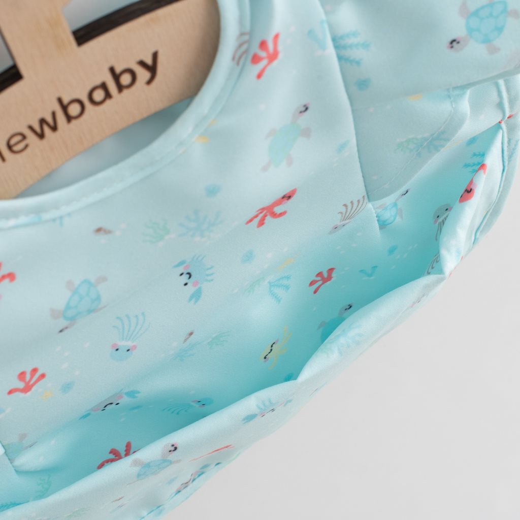 Luksuzna dekliška brisača z volančki New Baby učinkovito ščiti oblačila vašega otroka pred umazanijo med jedjo in igro. Izdelana je iz lahkega in prijetnega materiala. Brisača ima udobno zapiranje s pomočjo ježka in praktično žep. Žep je izdelan iz dveh plasti materiala. Spodnji del brisače je podložen z nepremočljivim materialom. V primeru umazanije lahko brisačo obrišete z vlažno krpo ali operete v pralnem stroju.
