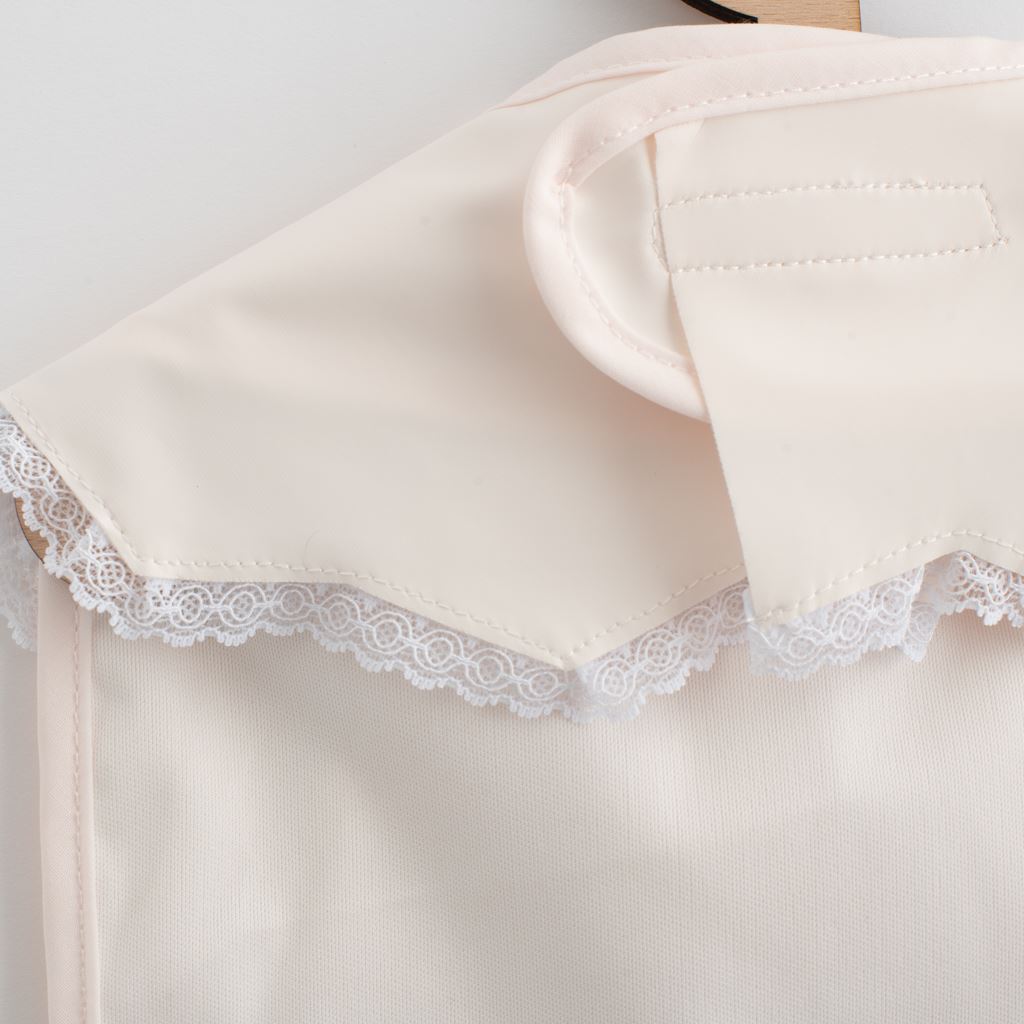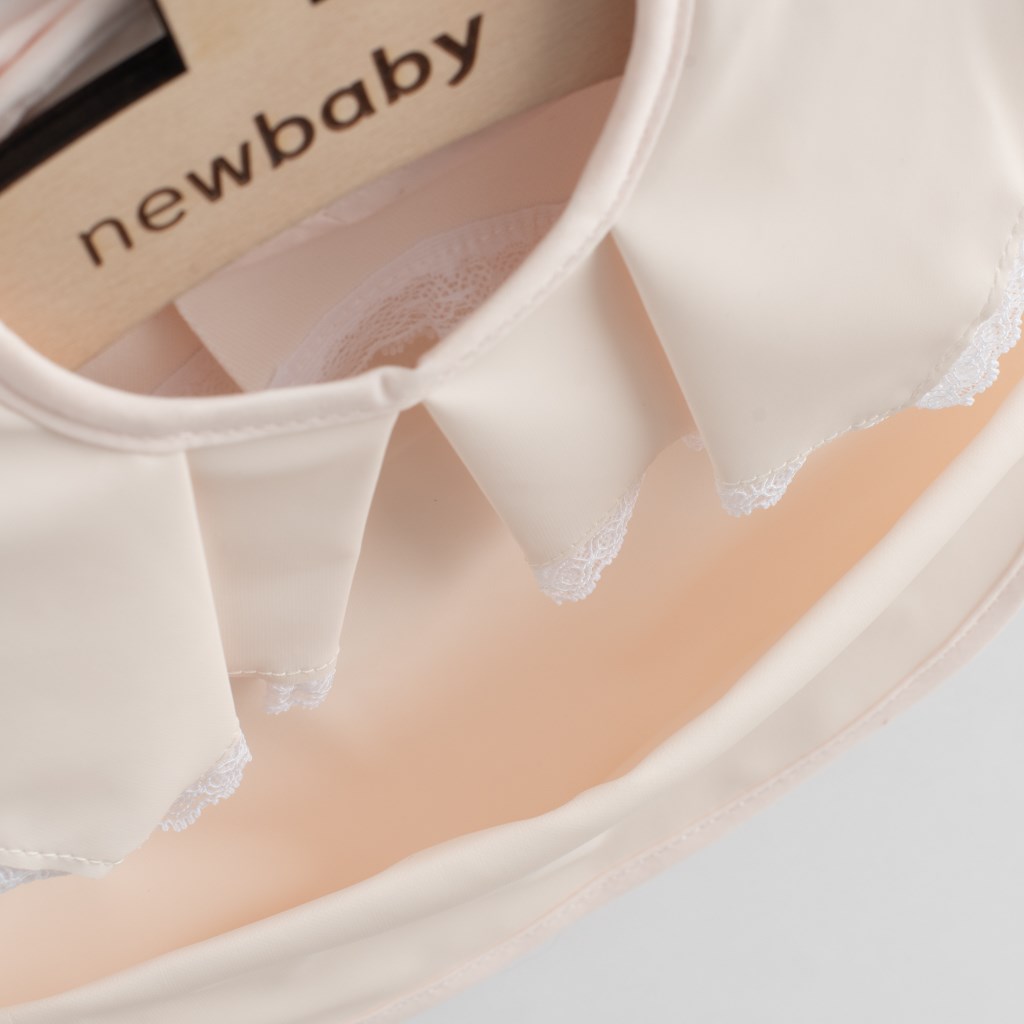 Luksuzna dekliška zaščita za oblačila New Baby učinkovito ščiti oblačila vašega otroka pred madeži med jedjo in igro. Narejena je iz lahkega, mehkega in enostavno pralnega materiala. Zaščita ima udoben sistem zapiranja na ježka in praktično žepno. Žep je izdelan iz dveh plasti materiala. Ob madežih lahko zaščito obrišete z vlažno krpo ali operete v pralnem stroju.