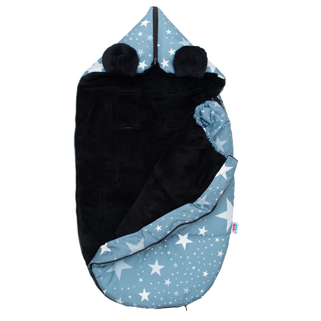 Zimski otroški fleece spalni sack Czech blagovne znamke New Baby. Luksuzni spalni sack je idealen za voziček in avtosedež. Osupljiv luksuzni zimski spalni sack s sodobnim dizajnom, ki je zasnovan z največjo skrbnostjo. Otroški spalni sack ima odprtine za varnostne pasove, kar omogoča maksimalno varnost med potovanjem. Zgornji del je zožen v kapuco za največje udobje in varnost dojenčka. S tem zaščitite glavico otroka pred vetrom in mrazom. Kapuca je okrašena s prikupnimi ušesi. Spalni sack ima zadrgo po celotnem obodu, kar zagotavlja udobje in omogoča zelo enostavno vstavljanje dojenčka v snemalni sack. Zato ga je mogoče uporabiti tudi kot podlago. Notranjost spalnega sacka je sestavljena iz mehke in prijetne plasti fleece materiala. Ti materiali pomagajo ohranjati stalno telesno temperaturo in preprečujejo prenapolnitev organizma. Luksuzni spalni sack je idealno darilo in je primeren za vse sodobne mamice. Sestava: notranja plast fleece, zunanja plast 100% poliester, polnilo-100% poliester-antialergenska vlakna. Dimenzije: cca 112x54 cm.