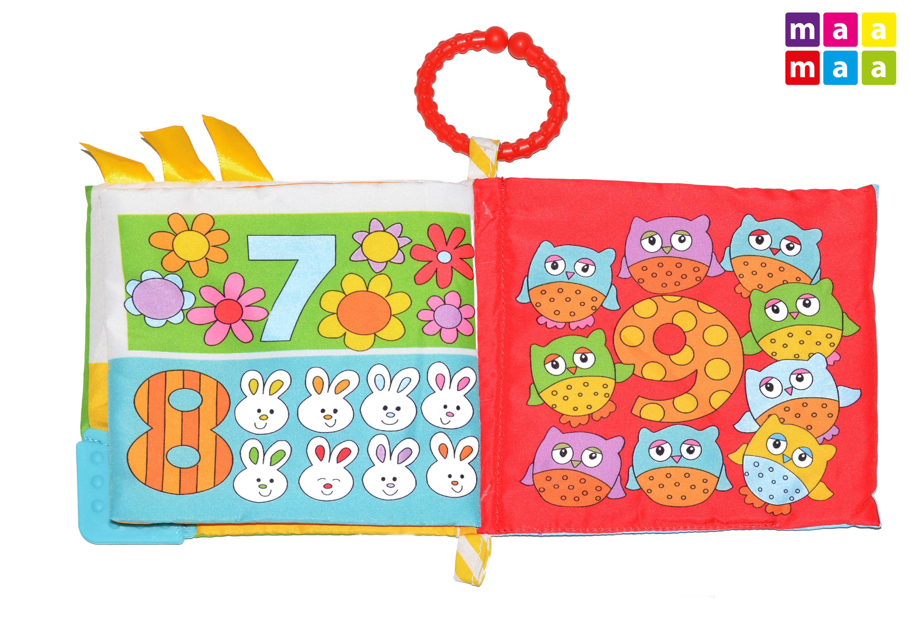 Látková knížka pro děti. Rozměry 15x15 cm.
