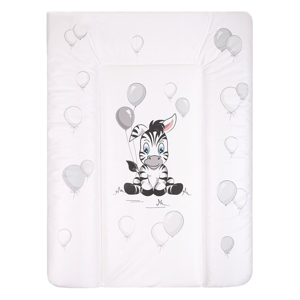 Praktična mehka previjalna podloga New Baby iz nepremočljivega plastičnega materiala z motivom zebre v prijetnih pastelnih barvah. Podloga je napolnjena s poliestrskimi vlakni in jo lahko uporabite na komodi ali drugem mestu za previjanje, zaradi nizke teže pa je prenosna. Izdelana je iz najkvalitetnejše certificirane folije, ki ne vsebuje škodljivih snovi in je nežna do najobčutljivejše otroške kože. Dimenzije: cca 50x70 cm, debelina cca 4 cm.