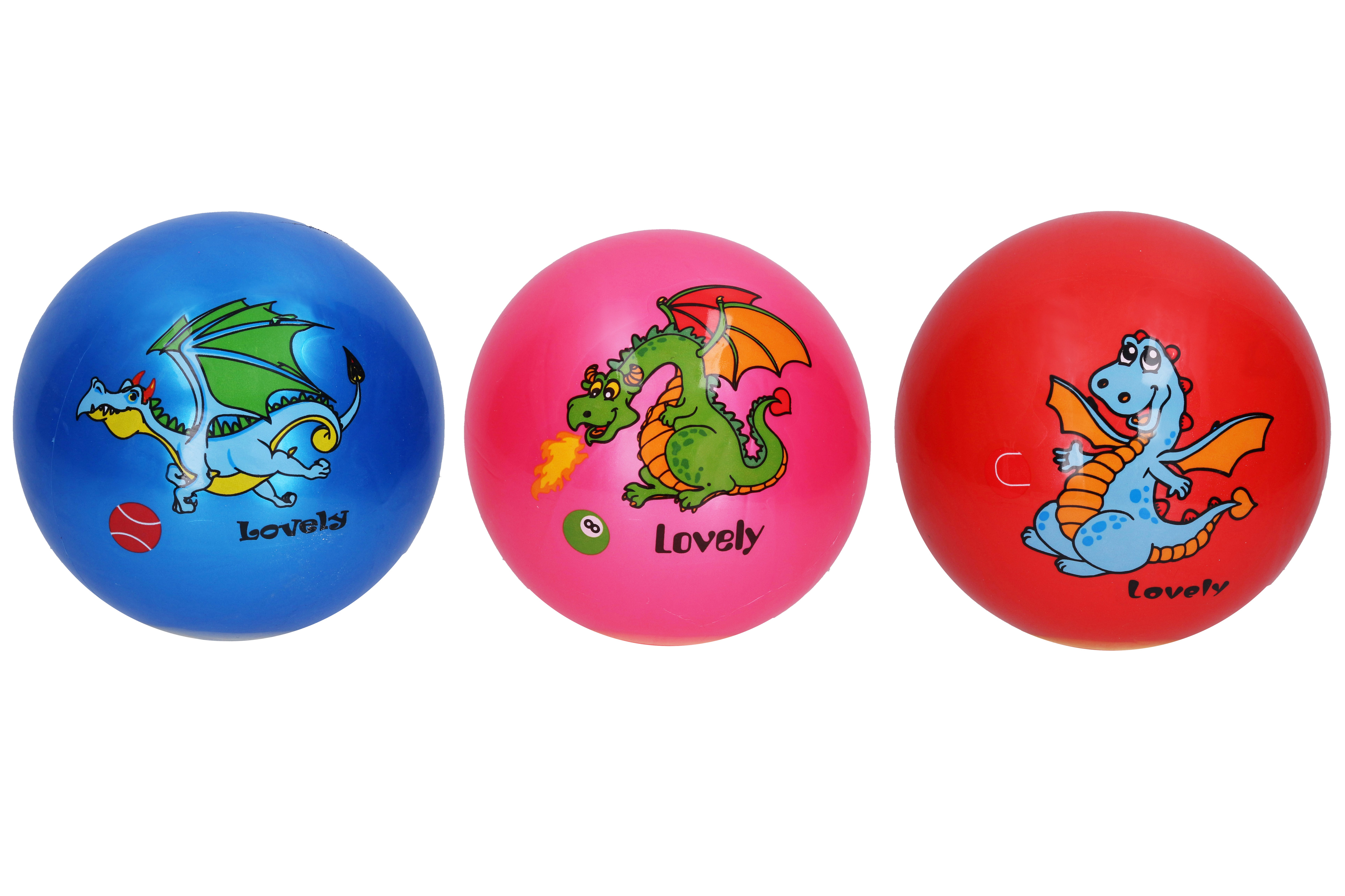 Míč gumový nenafouknutý drak 22 cm. 3 barevné varianty - modrý, červený, růžový.