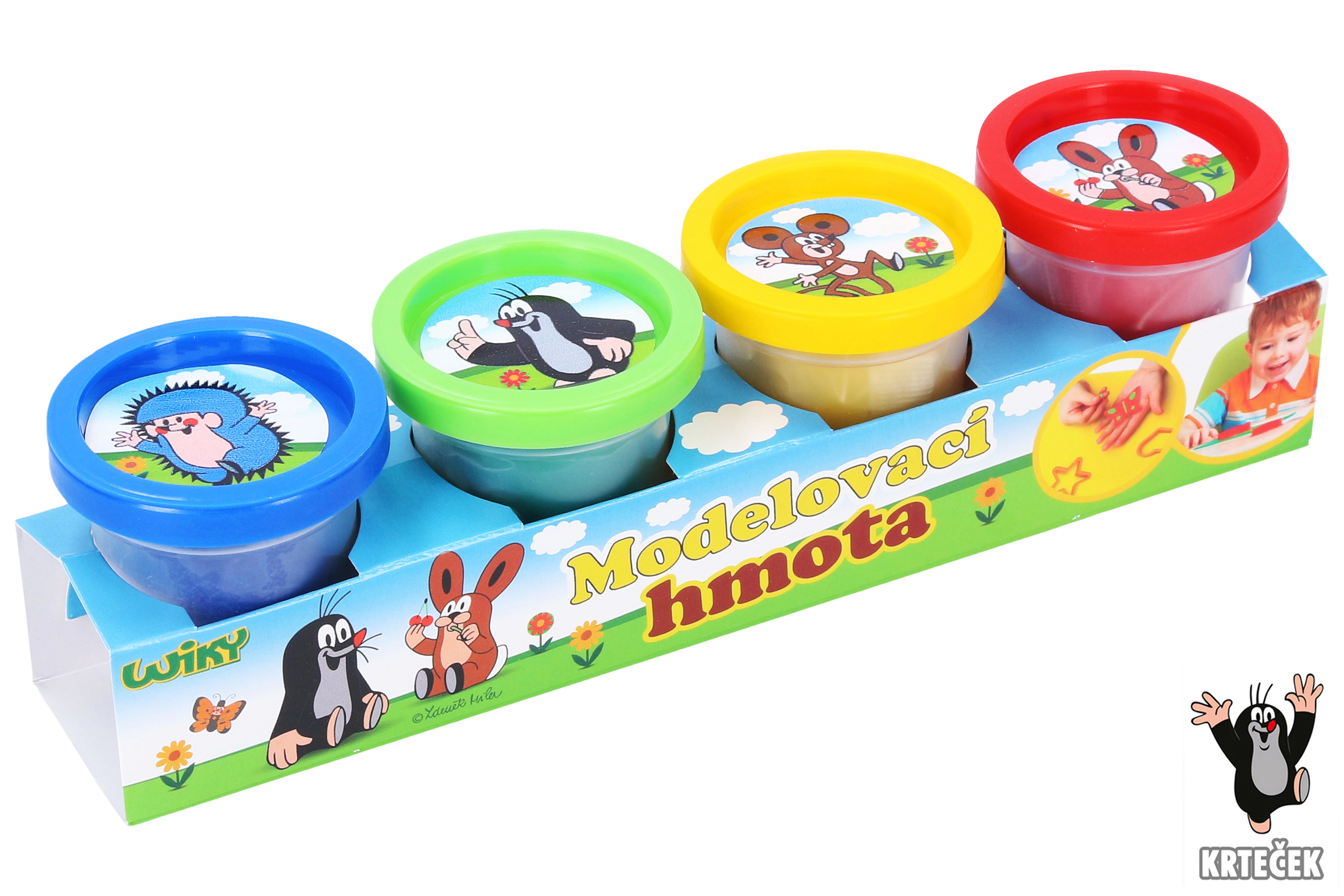 Modelína Doh Krtek. Balení 4x50g. Barvy - modrá, zelená, žlutá, červená.