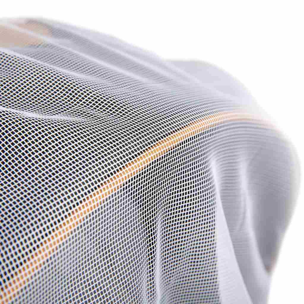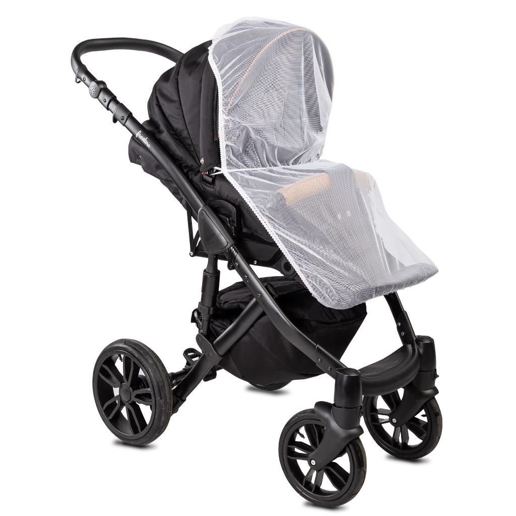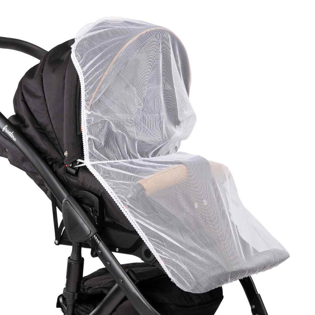 Univerzalna mreža proti insektom za otroški voziček. Zaradi svojih univerzalnih dimenzij in zategljive elastike se prilega tako golf vozičku kot tudi globokemu vozičku in popolnoma ščiti vašega otroka pred insekti. Dimenzije: cca 45x85 cm. Sestava: 100% poliester.