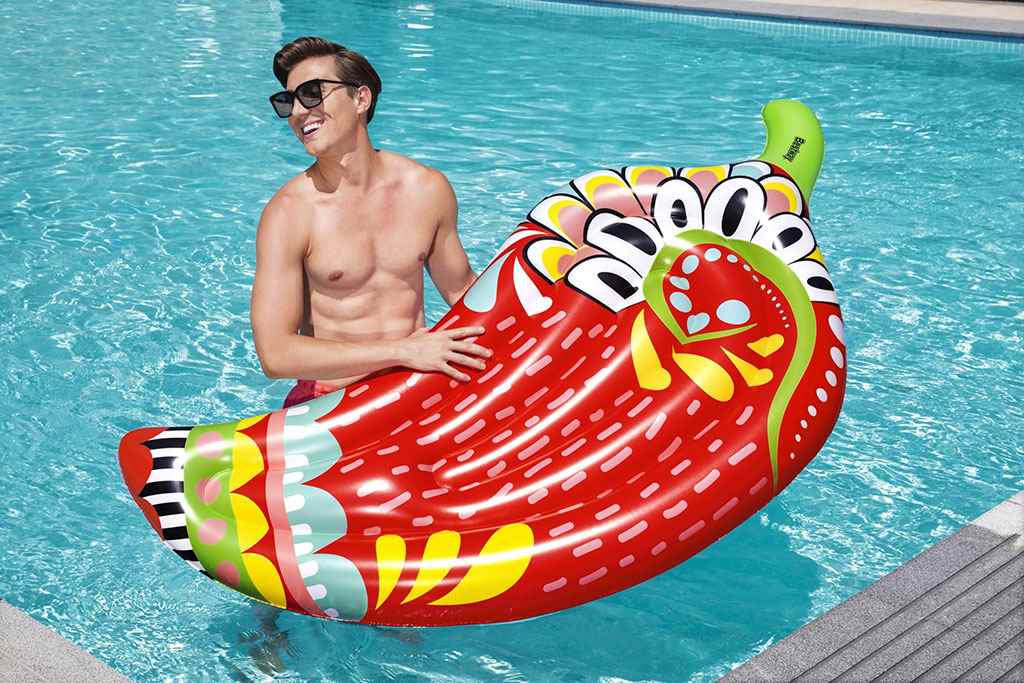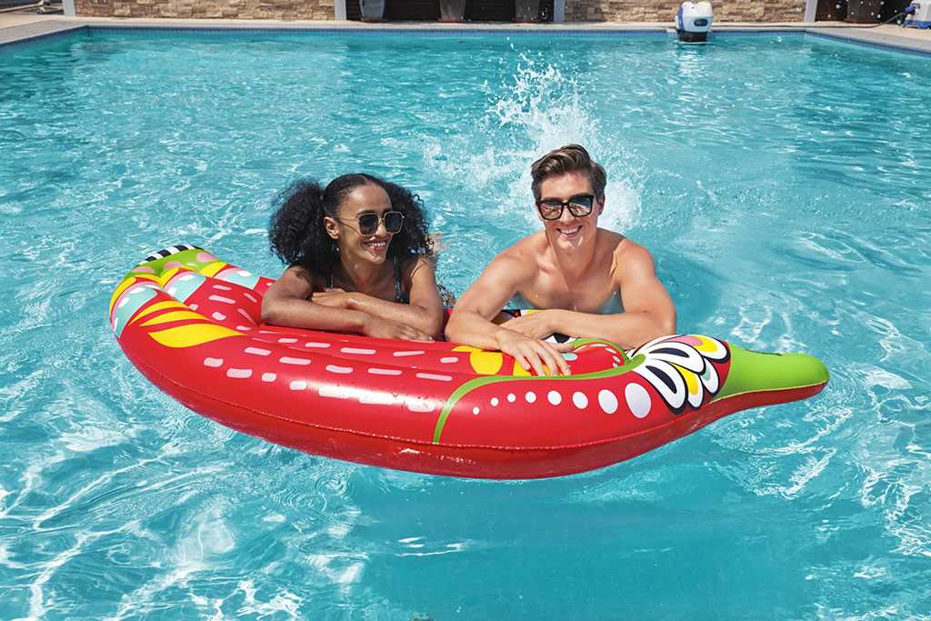 Živahna grafika te matrace ustvarja vzdušje zabave in poskrbi, da bo kopanje s družino in prijatelji ob bazenu, jezeru ali na plaži še bolj zabavno. Vgrajen varnostni ventil zagotavlja stalni pritisk zraka, enostavno se napihuje, izpihuje in shranjuje.