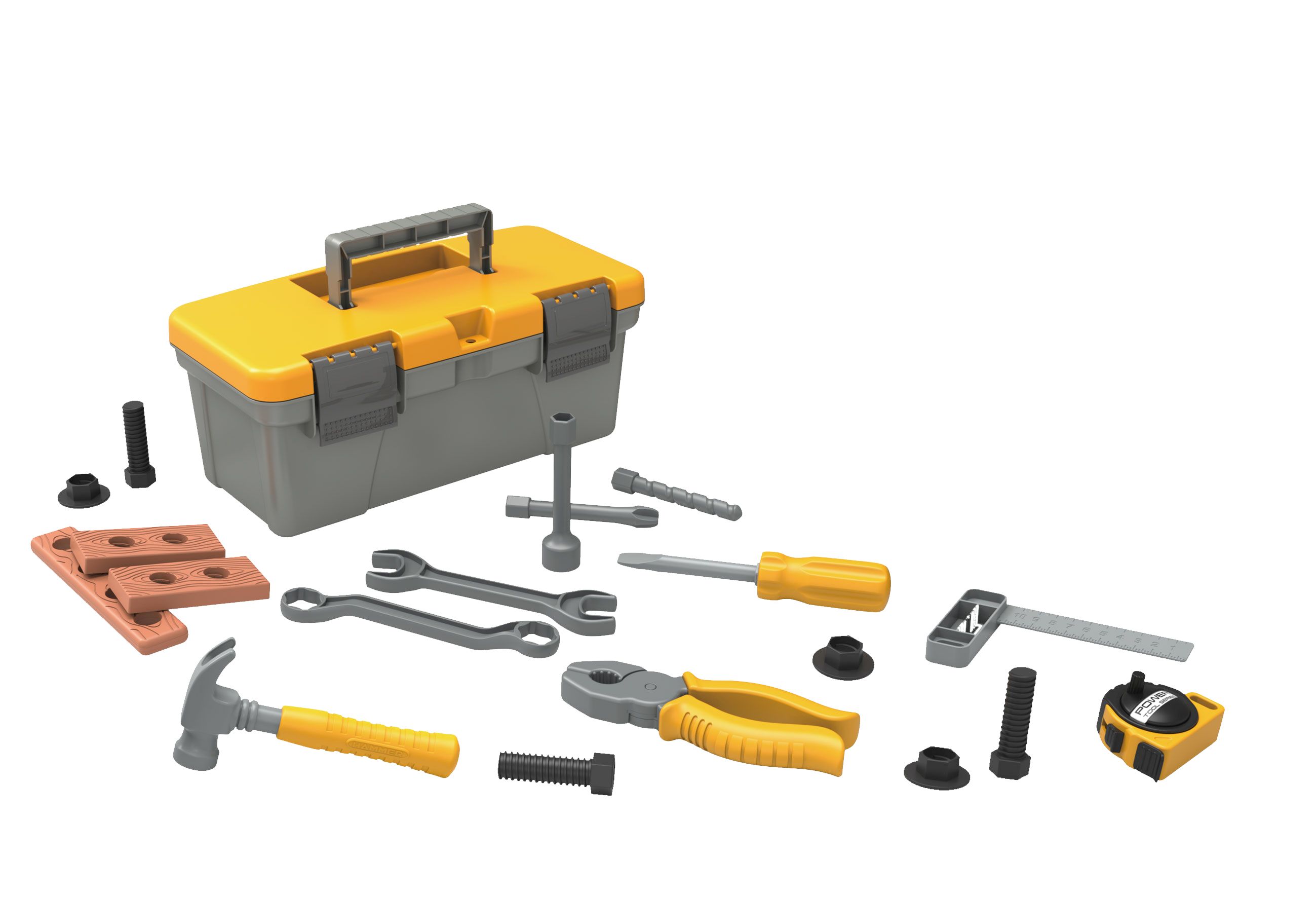 Nářadí v kufříku. Rozměry kufříku 27,5x14x11,5 cm. Obsahuje - kladívko, kombinačky, šroubovák se 3 výměnnými nástavci, 2 klíče, šrouby, matice, dřívka, vrták, úhelník, svinovací metr.