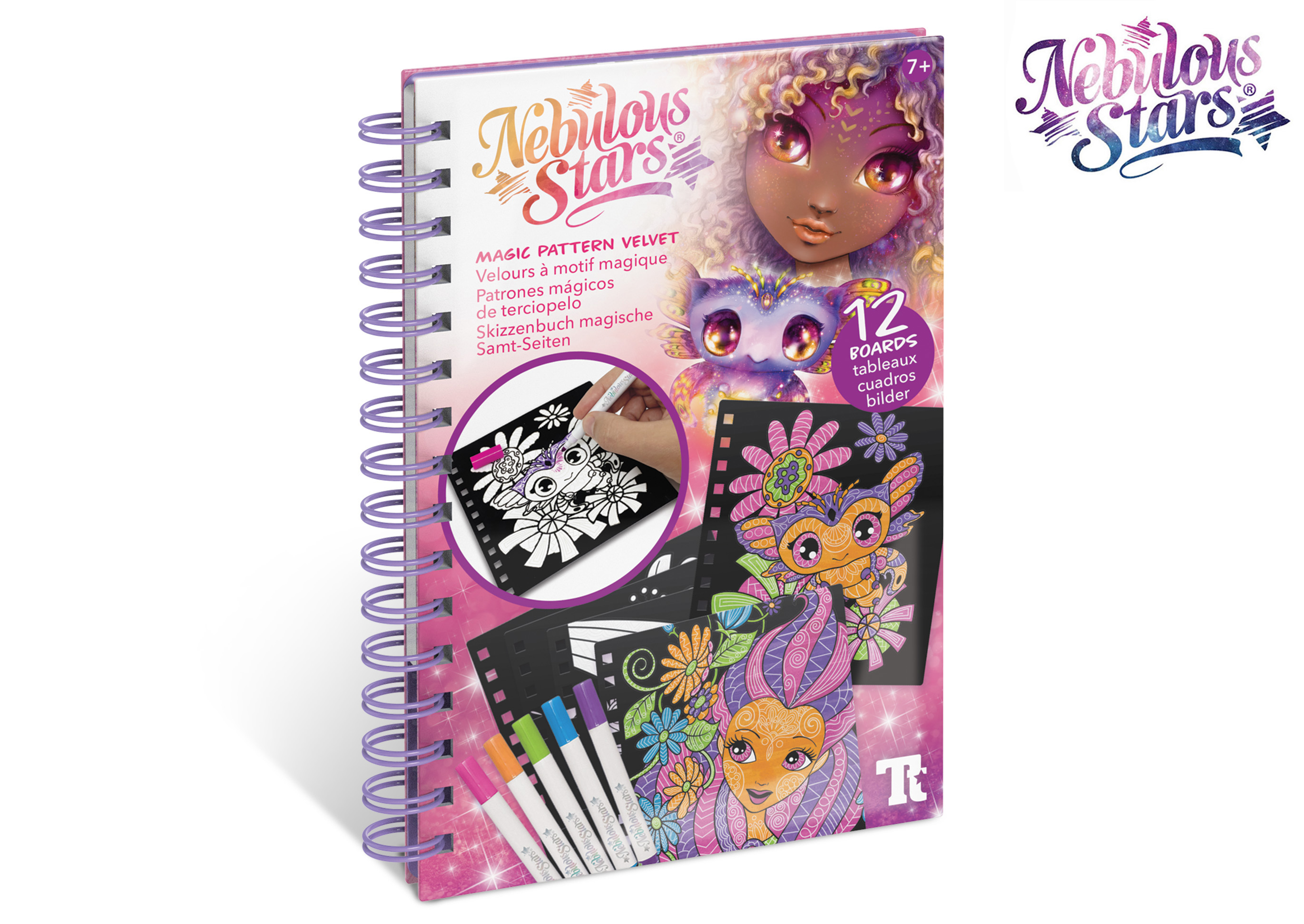 Nebulous Stars Magické omalovánky. 12 sametových desek, 5 mini fixů, barevné pokyny, příběh Orelie. Display box - 8ks.