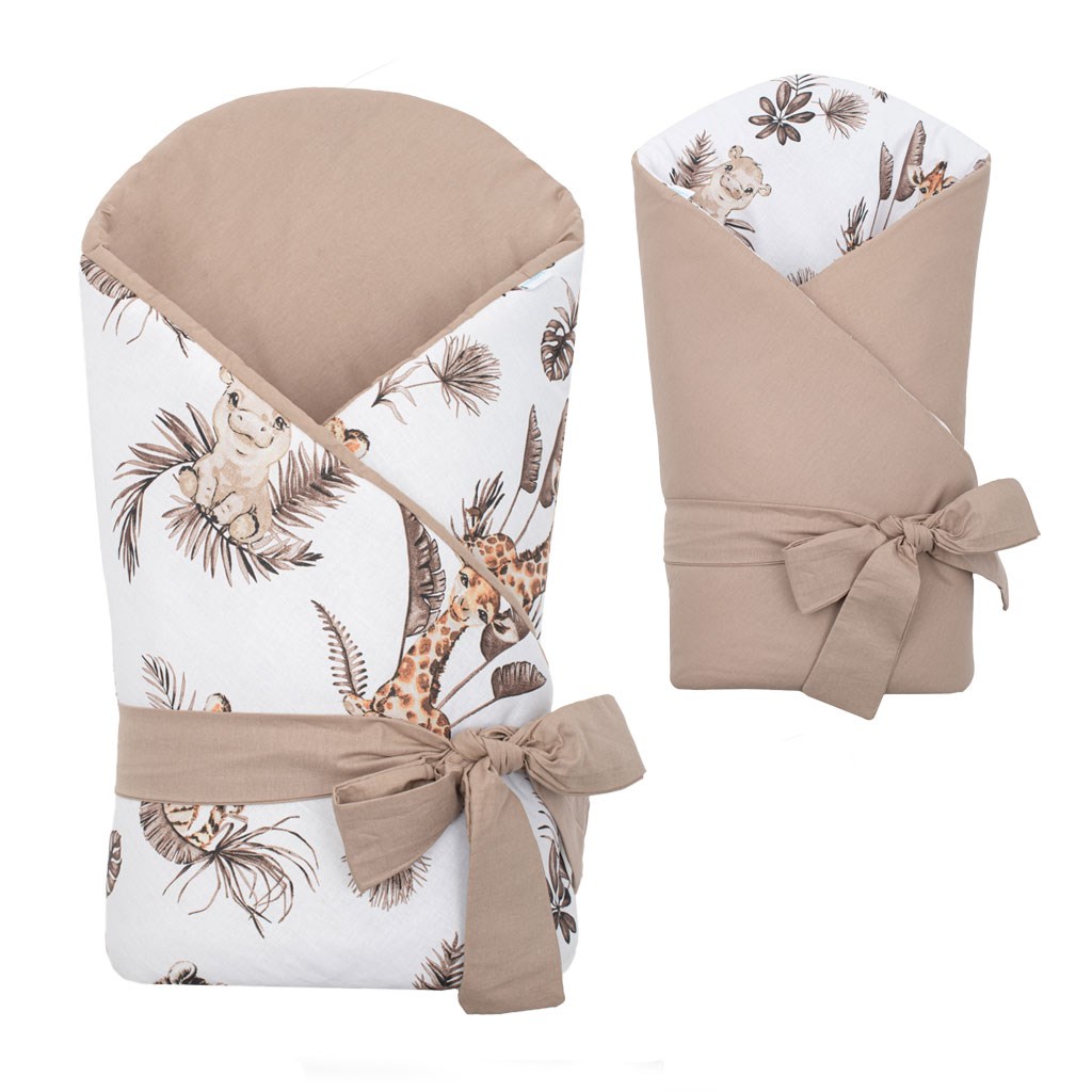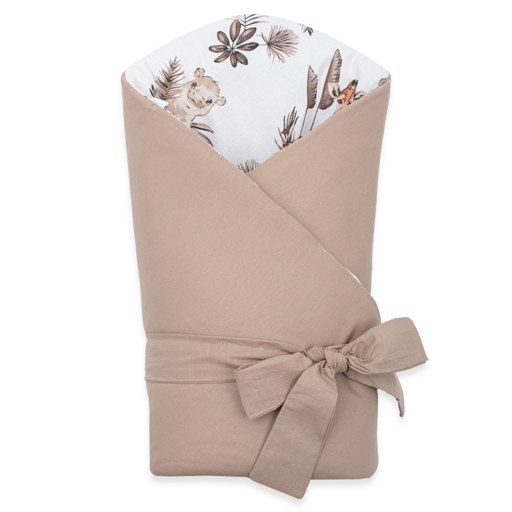 Nádherná dětská oboustranná zavinovačka české značky New Baby Safari pro miminka. Zavinovačka je vyrobena z kvalitního a jemného materiálu, který zaručí vašemu miminku příjemné teplo. Výplň je až 3 cm co znamená, že zavinovačka je vhodná i na chladnější dny a je dostatečně pevná. Krásný dětský motiv, polahodí dětským očičkám. Zapínání na suchý zip i pásek na zavázaní na mašli.