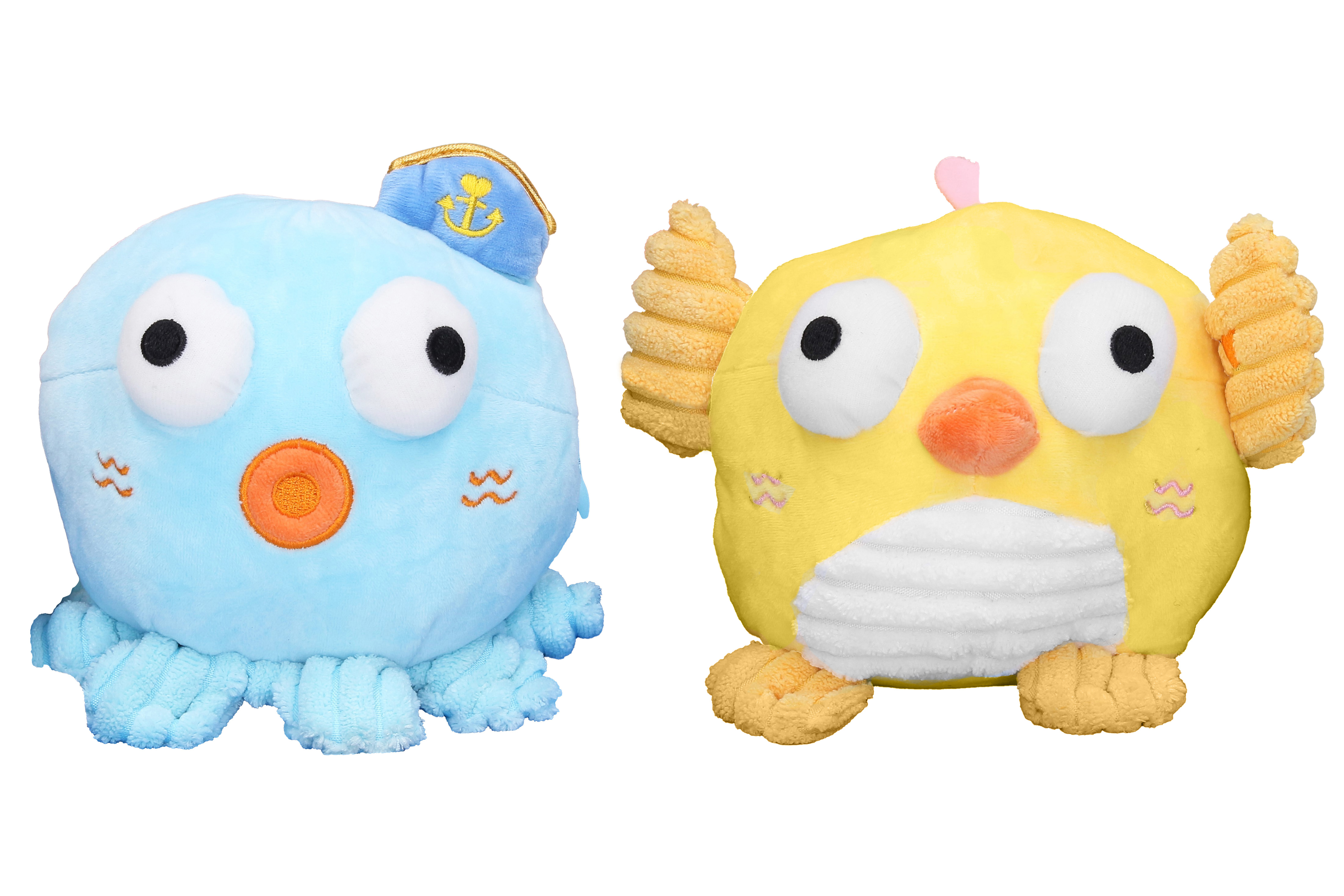 Opakovací zvířátko. Velikost 15cm. Stisknutím klepítka(krab), korunky(červená chobotnice), křídla(kuře) nebo čepice(modrá chobotnice) se spouští nahrávání a zvířátko rovnou opakuje co slyší. Dalším stiknutím se zapnou písničky, dalším opět nahrávání atd. Vypíná se on/off přepínačem uvnitř zvířátka. Zezadu má zip. 3xAAA baterie nejsou součástí. 4 varianty -krab, kuře, modrá chobotnice, červená chobotnice