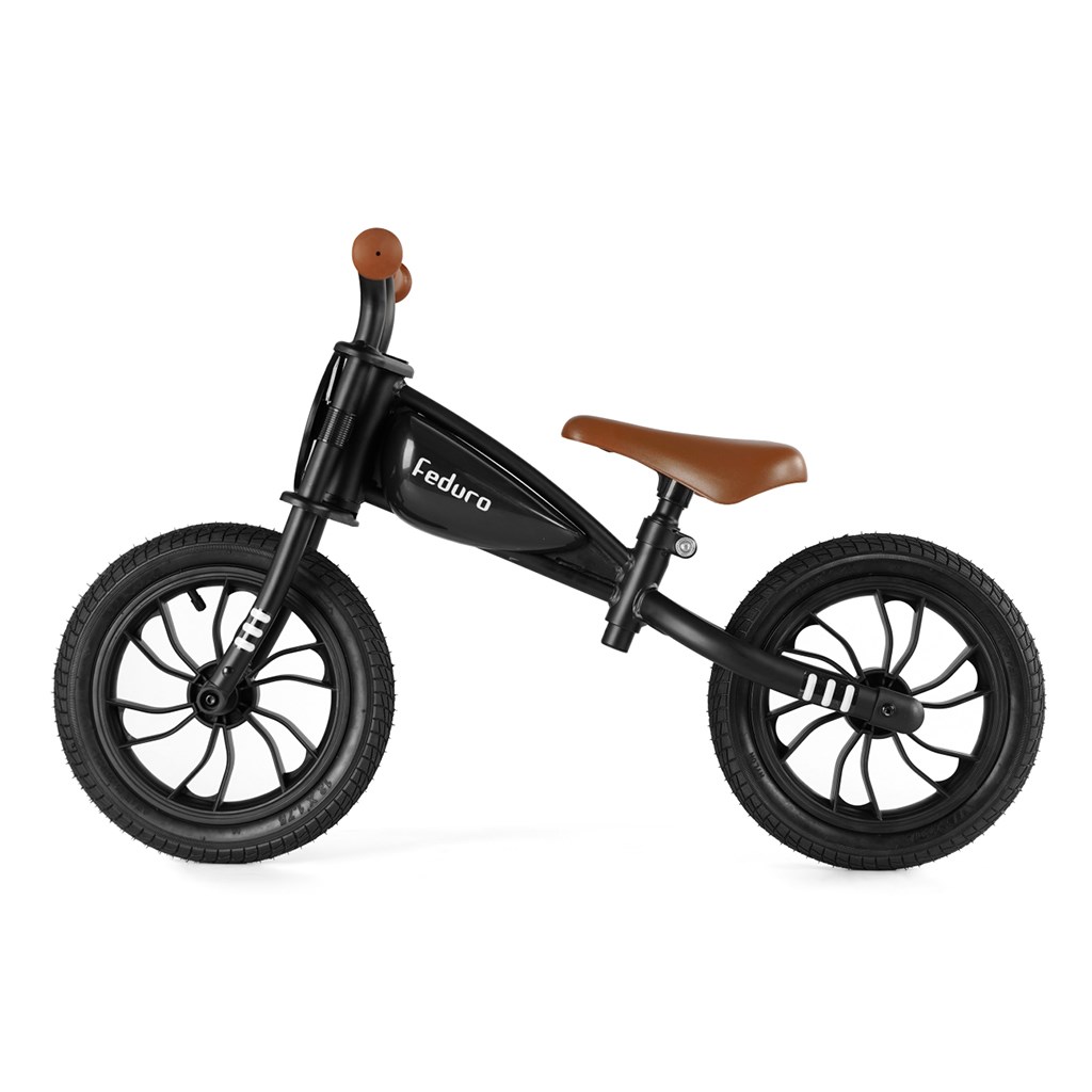 Blokada proti pretiranemu obračanju krmila in ležajna kolesa povečujejo varnost. Protizdrsni ročaji z zaščitnimi konci ščitijo roke pred odrgninami. Oblikovan in mehko oblazinjen sedež nudi udobje na vsaki vožnji. FEDURO je idealno orodje za vadbo ravnotežja pred vožnjo s pedali.