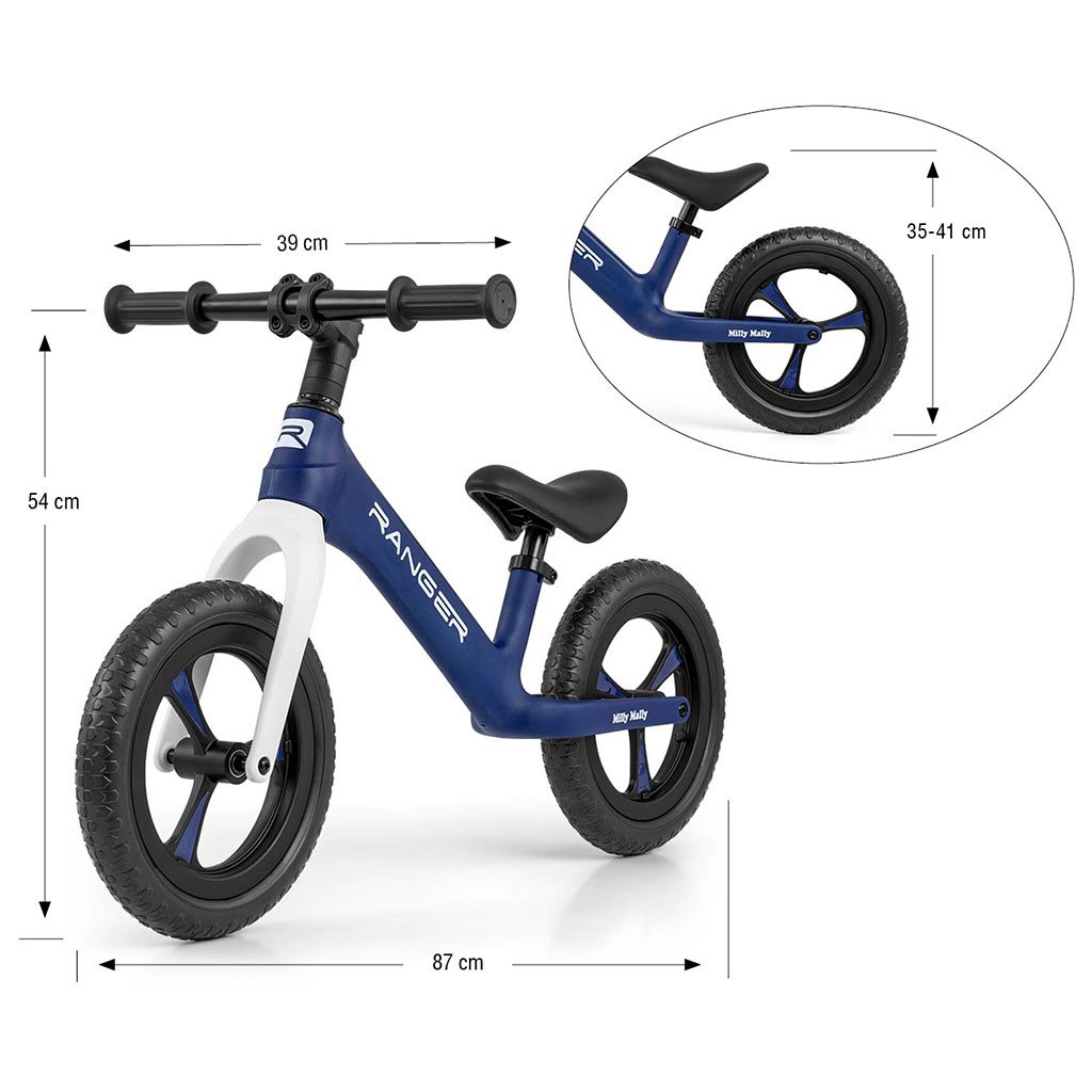 Odporna in izdelana z najnovejšo tehnologijo EVA pene, 12" kolesa odporna proti prebadanju, ki jih ni treba napihovati, so brez vzdrževanja. Ergonomičen, po višini nastavljiv sedež s mehko oblogo zagotavlja udobje otroku med vožnjo in raste skupaj z njim. Kolo Ranger ima krmilo z ležaji, prav tako kolesa z ležaji. Protizdrsne ročice iz mehkega gumijastega materiala zagotavljajo trden oprijem in udobno vožnjo.