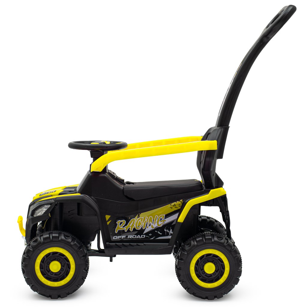 Ruggy se ponaša z atraktivnim terenskim videzom, navdihnjenim z off-road vozili. Njegova masivna konstrukcija, športne linije in dinamične barve zagotovo pritegnejo vsakega radovednega otroka. Udobno vožnjo dodatno zagotavlja ergonomsko oblikovano sedež iz ekološke usnja.