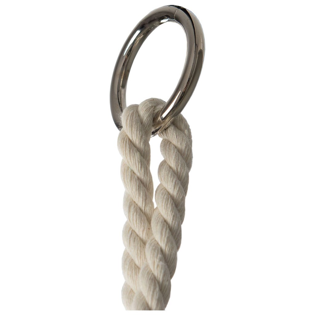 Grobi bombažni vrvi so opremljeni s kovinskimi obroči za obešanje in so končani z okrasnimi resicami.