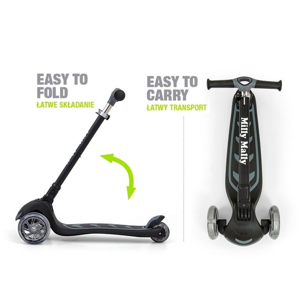 Da bi ustregli potrebam naših malih dirkačev, smo ustvarili kolobožko BOOGIE SCOOTER. Je idealna rešitev za aktivne otroke, ki imajo radi gibanje. BOOGIE je izdelan iz kakovostnih materialov, kar ga dela idealnega za sprehode ali norčije okoli hiše. Lahka in hkrati trdna aluminijasta konstrukcija zagotavlja vzdržljivost in dolgo življenjsko dobo izdelka. Krmiljenje in zavijanje delujeta na principu spreminjanja ravnotežja telesa. Velika prednost kolobožke so 3 kolesa, ki zagotavljajo stabilnost in varnost. Zadnje kolo je poleg tega dvojno. Barvna in svetleča sprednja kolesa zagotavljajo otrokom med vožnjo še več zabave.