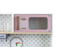 Milly Mally je stavila na bogato opremo, ki vključuje ponev, lonec s pokrovom ter lesene kuhalnice, ki jih je mogoče obesiti na kljuke pod napo. Otroci se s to igračo učijo odgovornosti za svojo kuhinjo in čiščenje med igro. Ta kuhinja je prav tako opremljena z višinsko nastavljivimi nogami, kar zagotavlja, da raste skupaj z otrokom.