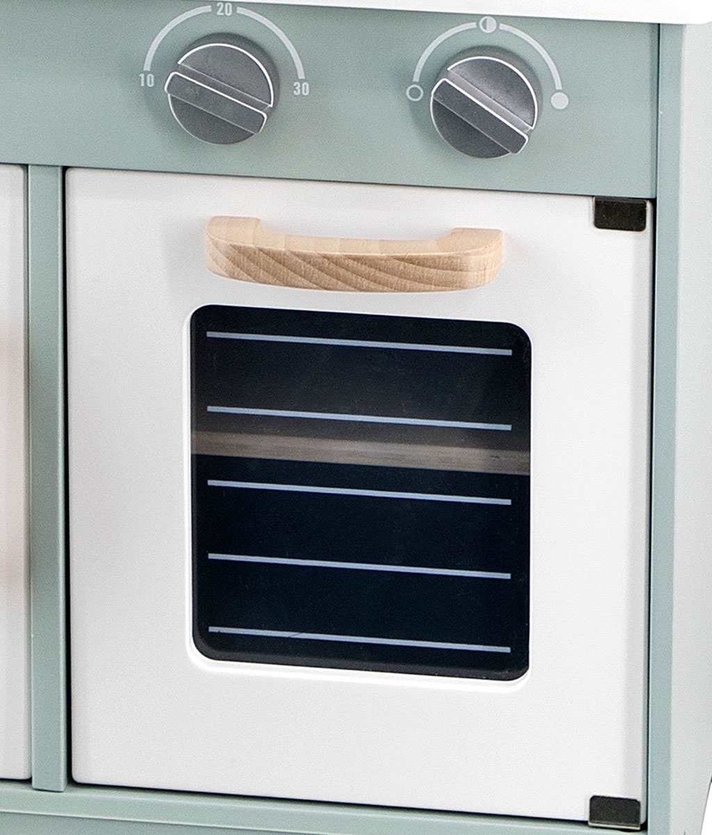 Vsaka kuhinja ima umivalnik, pečico in štedilnik, kjer lahko pripravite priljubljene jedi za celo družino. Postavite lonec na štedilnik, čigar plameni se prižgejo, in pripravite poljubne jedi za punčke in medvedke. Štedilnik je opremljen z vsem potrebnim priborom za kuhanje.