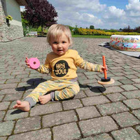 Stylna bombažna otroška majica češke blagovne znamke New Baby With Love. Majica z dolgimi rokavi in sivim obrobo okoli vratu in rokavov je okrašena z napisom Hey You!. Zapiranje na ramenu s gumbi olajša oblačenje. Majica je izdelana ob upoštevanju potreb malih otrok iz zelo prijetnega in nežnega materiala. Moderna in koristna kos v omari malih otrok, ki ima široko uporabnost. Sestava 100% bombaž.