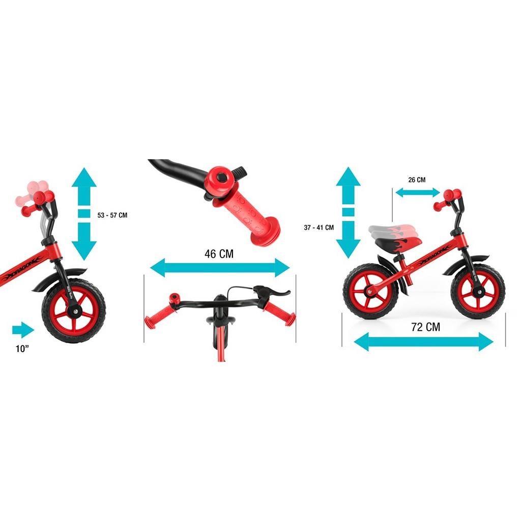 Otroški odrivalnik-kolo Milly Mally Dragon je idealen, ko se otrok uči ohranjati ravnotežje. Je najboljša alternativa kolesu s stranskimi kolesi, zato bo kasnejša vožnja s klasičnim kolesom veliko lažja. Kolo je brez pedal, kar otroku omogoča, da se osredotoči predvsem na ohranjanje ravnotežja in smer vožnje. Ima zavora, udoben sedež in trden kakovosten okvir.