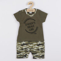 Cute girls' cotton pajamas from the Czech brand New Baby Dream with a teddy bear. The summer pajamas consist of a short-sleeved t-shirt and shorts. The t-shirt with ruffles features a cute picture of a teddy bear on a cloud surrounded by stars on the front. It fastens with snaps at the shoulder. The shorts are fully printed with teddy bears and have adorable ruffles on the leg openings. The waistband is wider with an elastic band that doesn’t press on the baby’s tummy. Customer satisfaction is very important to New Baby, and that’s why we offer you our quality pajamas that will make your child's bedtime more enjoyable. Suitable as children's summer clothing. Composition: 100% cotton.