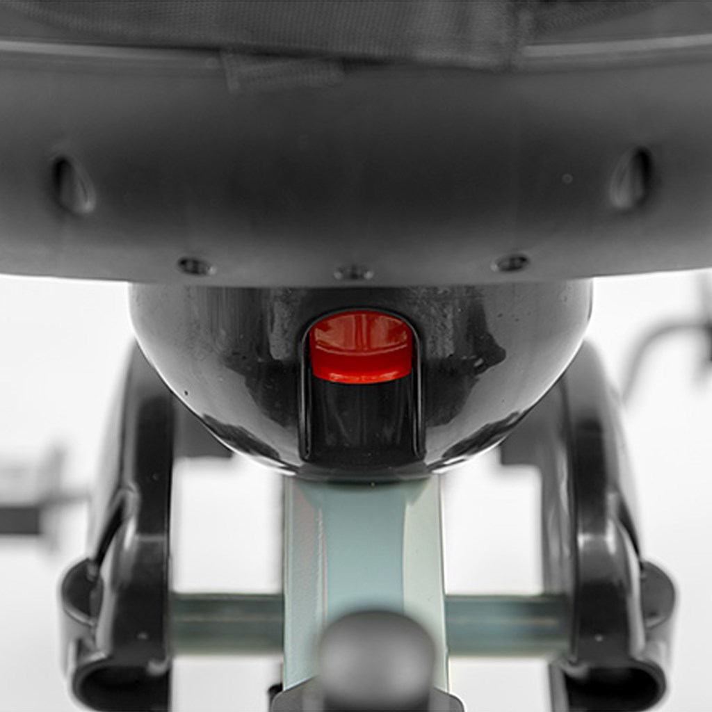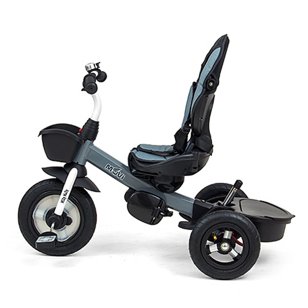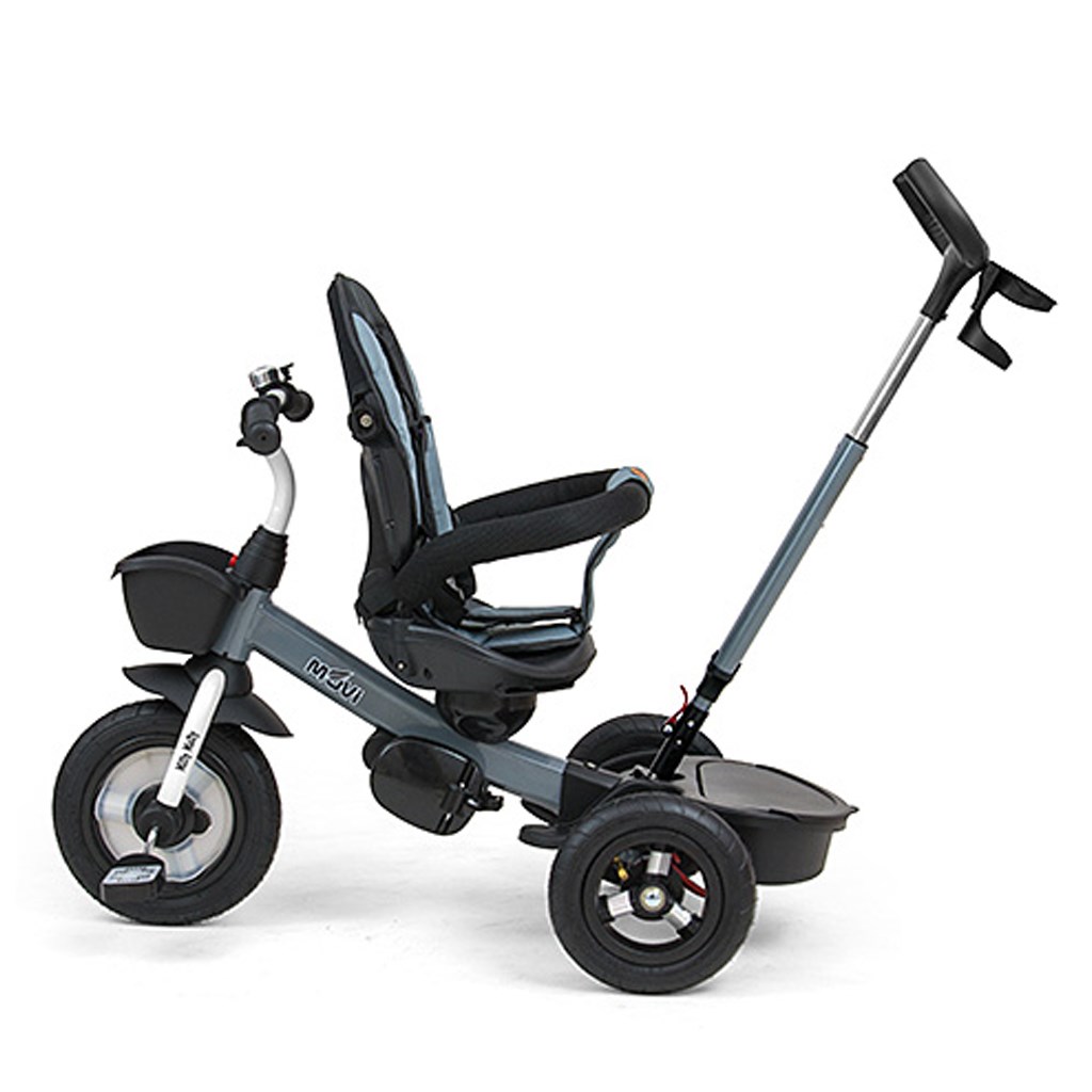 Izdelan je iz kakovostnih in trpežnih materialov. Ima moderno konstrukcijo, udobno in ergonomično oblikovano sedežno mesto, ki se vrti za 360 stopinj, kar otroku omogoča, da potuje v smeri ali proti smeri vožnje. Za udobje in varnost med vožnjo skrbi varnostna ograja, trislojni varnostni pasovi, udobni oporniki za noge in velika napihljiva kolesa, ki odlično absorbirajo udarce in zagotavljajo dobro oprijemljivost. Trosedežno kolo lahko upravlja tako otrok kot tudi starš s pomočjo nastavljive ročice za potiskanje. Po odstranitvi vodilne palice, zložljive strehe, ki ščiti pred soncem, ali drugih komponent bo služilo kot trokolka. Trosedežno kolo se lahko uporablja tudi kot alternativa golfskemu vozičku. Za shranjevanje igrač ali potrebščin za otroka je tu praktičen shranjevalni koš.