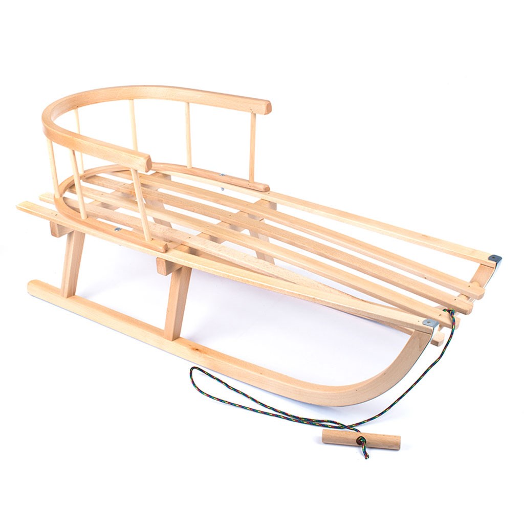 Otroške lesene sani z naslonjalom in vrvjo iz kvalitetnega bukovega lesa (trdo les, odporen na poškodbe).