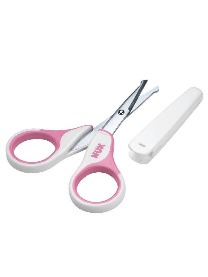 Otroške zdravstvene škarje s pokrovom NUK. Varne škarje za nežne otroške nohte. Idealne za dojenčke, katerih nohti hitro rastejo in potrebujejo nego. Posebna zaobljena oblika škarij zmanjšuje tveganje za poškodbe otroških prstkov, zagotavlja enostavno in hitro obrezovanje. Škarje so izdelane iz kakovostnega nerjavnega jekla. Namenjeno otrokom od prvih dni življenja.