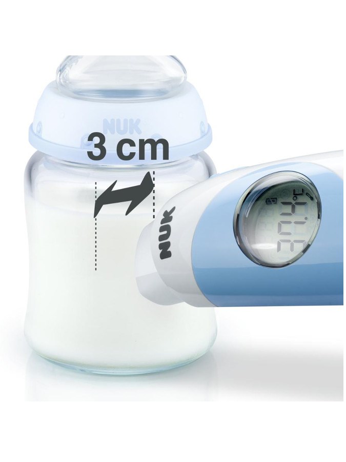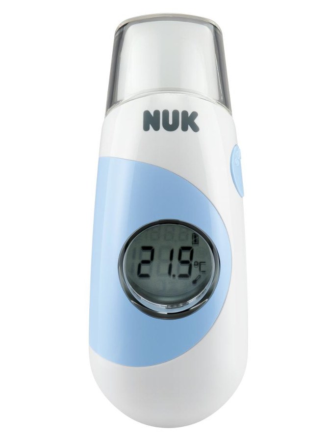 Otroški brezkontakni termometer NUK FLASH. Brezkontaktno merjenje na čelu traja 1 sekundo (maks. 3 cm od sredine čela). Merjenje je enostavno in hitro, kar je zelo praktično pri majhnih otrocih. Dodatne funkcije: