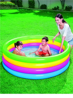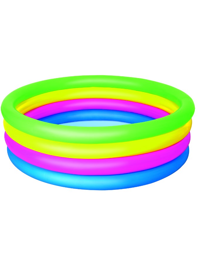Otroški napihljivi bazen Bestway. Čudovit pisan otroški bazen ima 4 barve in zagotovo bo razveselil vaše otroke v poletnih dneh. Verjetno si ne morete predstavljati poletja brez napihljivega bazenčka, ki se neizogibno prilega toplemu vremenu in polepša otrokom vroče poletne dni, ko se z njimi ne morete odpraviti na vodo. Čakajo jih neomejene ure veselja in zabave. Kvaliteten in stabilen bazen za vaš vrt. Primeren za otroke od 3. leta naprej. Dimenzije: približno 157x46 cm. Volumen: 522 l. Material: PVC.