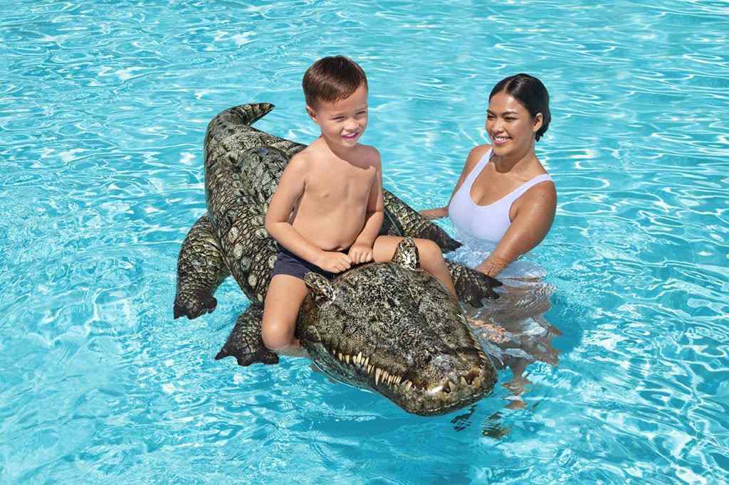 Otroški napihljiv krokodil za vodo Bestway. Krokodil ima trden ročaj za udobno držanje. Vaše otroke bo zagotovo zabaval in osvežil v vročih poletnih dneh. Krokodila lahko uporabljate v bazenih in pri morju. Primeren za otroke od 3. leta naprej. Sestava: PVC. Dimenzije: cca 193x94 cm.