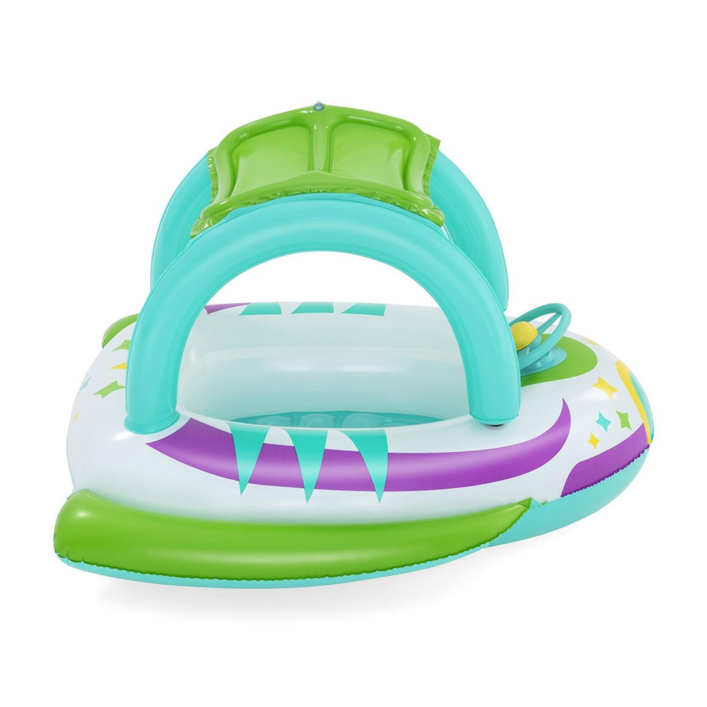 Otroški napihljiv vesoljski čoln Bestway. Lep barven otroški čoln v obliki vesoljske ladje s streho, ki ščiti otroka pred sončnimi žarki. Vsi otroci obožujejo igro v vodi, zato privoščite svojim otrokom pravljično lenarjenje na vodi.