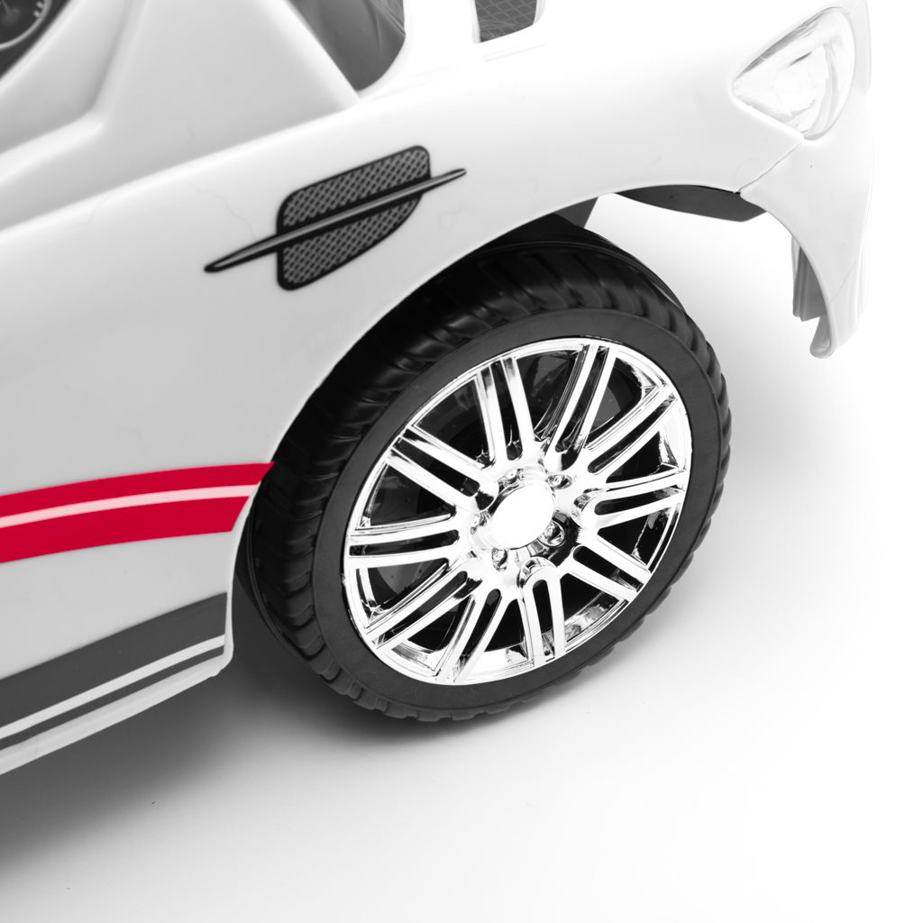 Avtomobilček Baby Mix RACER je pravo razkošje za vse dirkače in dirkačice. Popolna obdelava in detajli, kot so kolesa, luči ali oblika karoserije, pritegnejo pozornost vseh in hitro postanejo priljubljena igrača doma in na sprehodu. Narejen je iz kakovostnih materialov in je opremljen z zvočnim panelom. Igrača pomaga razvijati motorične sposobnosti otroka in zagotavlja veliko zabave in veselja. Zaradi posebne blokade na zadnjem delu je vaš dirkač zaščiten pred prevračanjem.