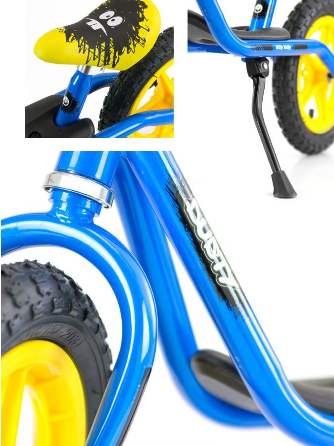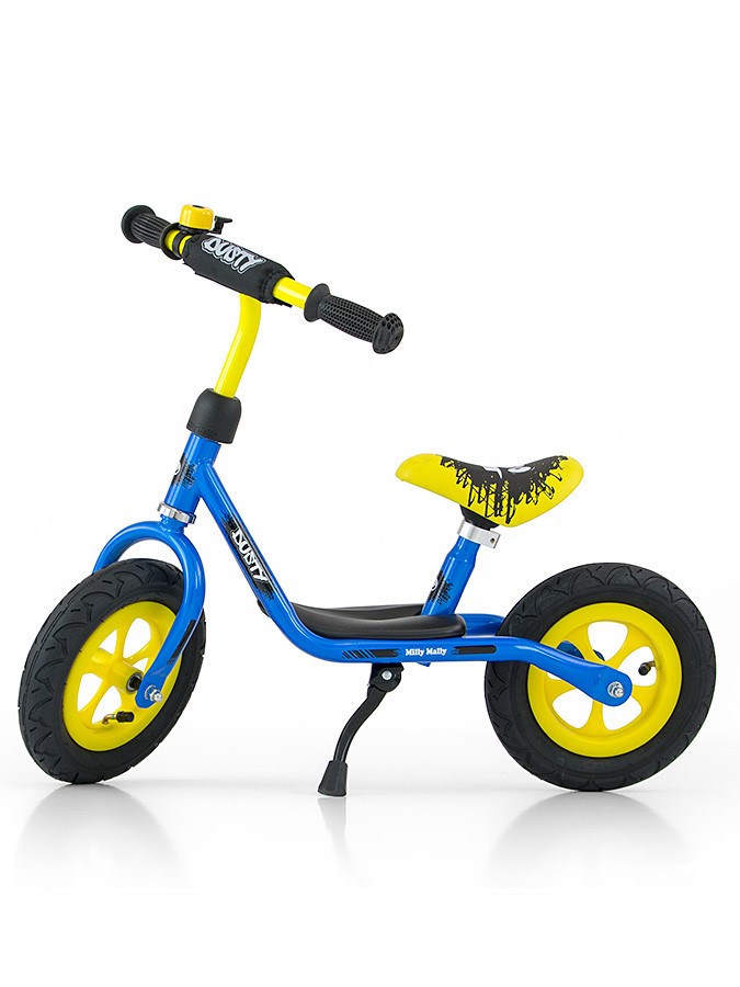 Otroški odrinjalnik-kolo Milly Mally Dusty je idealen, ko se otrok uči ohranjati ravnotežje. Je najboljša alternativa kolesu s stranskimi kolesi, tako da bo kasnejša vožnja na klasičnem kolesu veliko lažja. Kolo je brez pedal, kar omogoča, da se otrok osredotoči predvsem na ohranjanje ravnotežja in smer vožnje. Ima stojalo, noge pa lahko položi na stopalko.