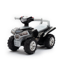 Odlična štirikolesnica Baby Mix z tremi melodijami, automatskim zvoncem in utripajočimi lučkami na krmilu. Štirikolesnica ima veselo barvo in je izdelana iz kakovostnega in trpežnega plastičnega materiala. Odraslek pomaga razvijati motorične sposobnosti otroka in zagotavlja mu veliko zabave in veselja. Primerna je tako za najmlajše otroke, ki že znajo sedeti, kot tudi za otroke, ki so se že naučili hoditi. Z štirikolesnico bo vaše dete uživalo v veliko zabave in veselja. Naša super štirikolesnica izgleda odlično, ima udoben širok sedež, široka krmila in velika plastična kolesa. Na krmilu ima atraktiven zvonec in gumb s tremi shranjenimi melodijami. Baterije niso vključene (2x AA 1.5V). Barve nalepk se lahko razlikujejo glede na trenutno ponudbo.