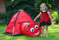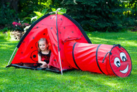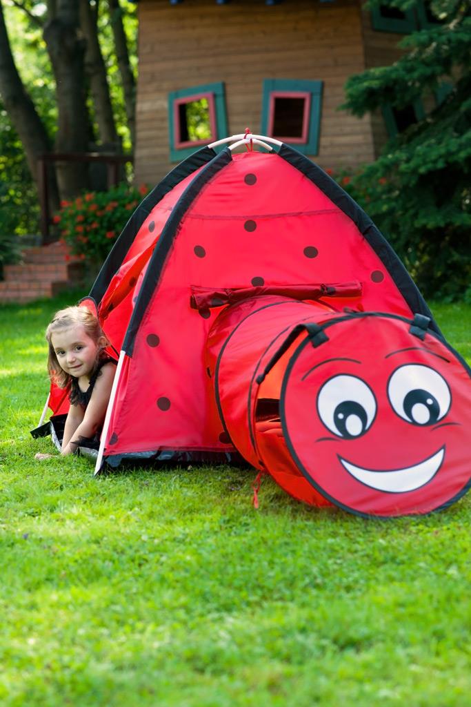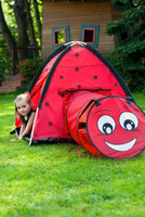 Odličen otroški šotor Baby Mix Žuželka z tunelom za vaše aktivne žuželke. Vsak otrok rad gradi improvizirane šotore s pomočjo stolov, miz in odej, mi pa vam to olajšamo. Z našim šotorom bo vaša princeska končno imela svojo sanjsko sobico, svoje lastno kraljestvo, zavetje, kjer si lahko privošči zasebnost ali pa povabi svoje najboljše prijateljice. Naj bo v svoji sobici, poleti na vrtu ali na plaži, bodo otroci z njim doživeli veliko zabave pri ustvarjanju svojih domišljijskih svetov. Tunel se preprosto vtakne v šotor, ni fiksno pritrjen in ga lahko poljubno premikate. Za celoten komplet, šotor in tunel, sta značilna hitro in enostavno postavljanje in pospravljanje. Narejen je iz kakovostne in trpežne tkanine. Namenjen je otrokom od 3. leta naprej.