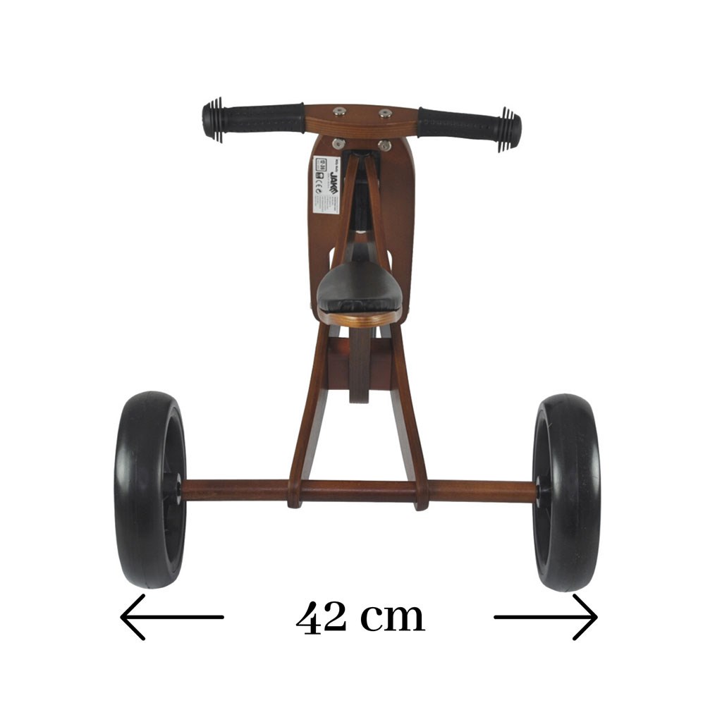 Otroško multifunkcijsko leseno odrivalo Milly Mally JAKE je idealno za otroke, ki se šele začenjajo učiti voziti kolo in še ne obvladajo ravnotežja na dveh kolesih. Prednost odrivalo JAKE je, da se iz trikolesa enostavno spremeni v odrivalo na dveh kolesih. Narejeno je iz trdnega lesa s čudovitimi veselimi barvami in slikami s penastimi kolesi. Široke razdalje koles zagotavljajo izjemno stabilnost, varnost in udobje doma in na prostem. Mehka nedrsljiva ročica zagotavlja zaščito roke otroka. Čudovito multifunkcijsko odrivalo, ki ugaja tako deklicam kot dečkom.
