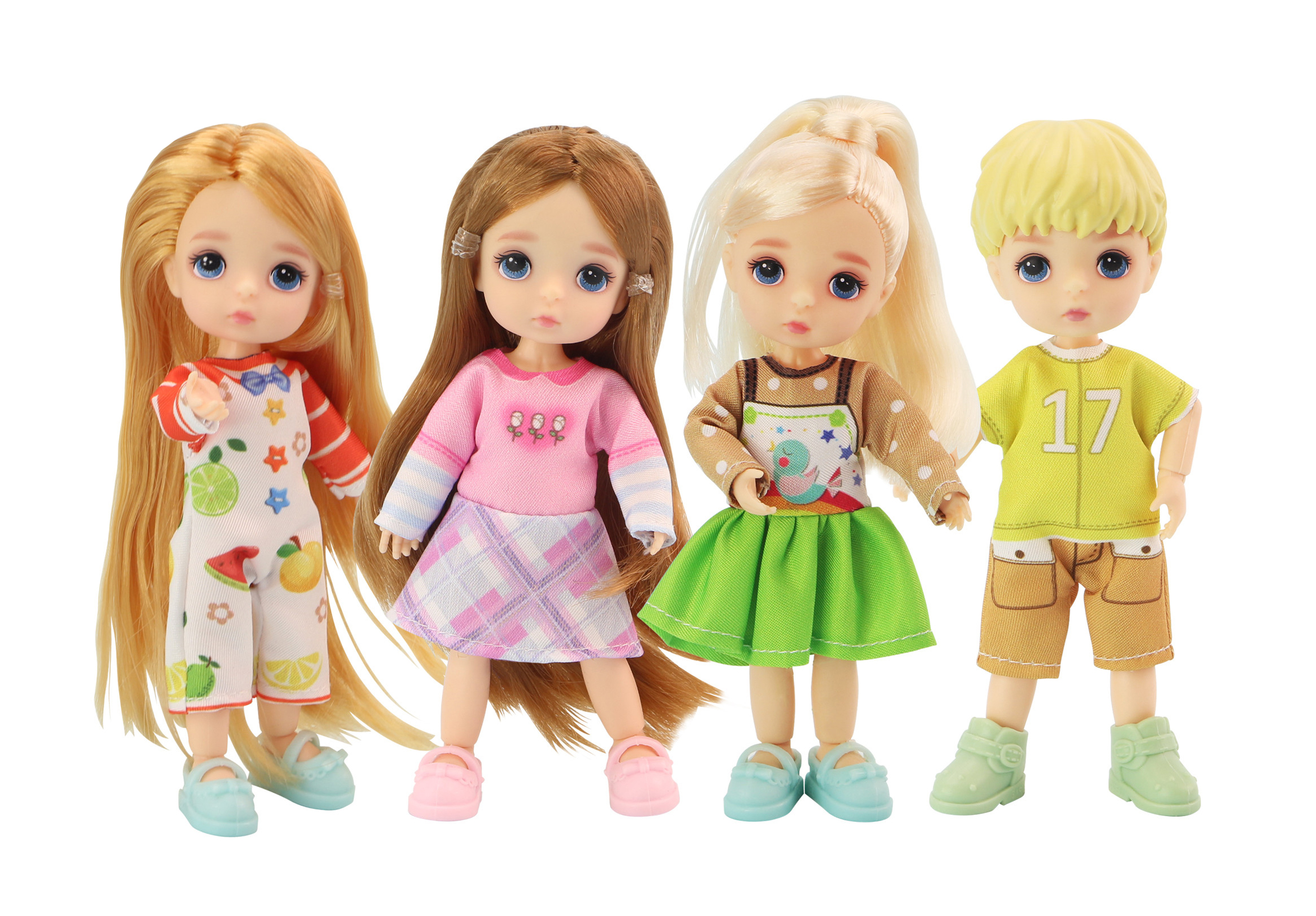 Panenka letní šaty. Velikost 12,5 cm. Display box 12 ks. Pohyblivé klouby. 4 varianty - bílé, růžové, zelené, žluté.