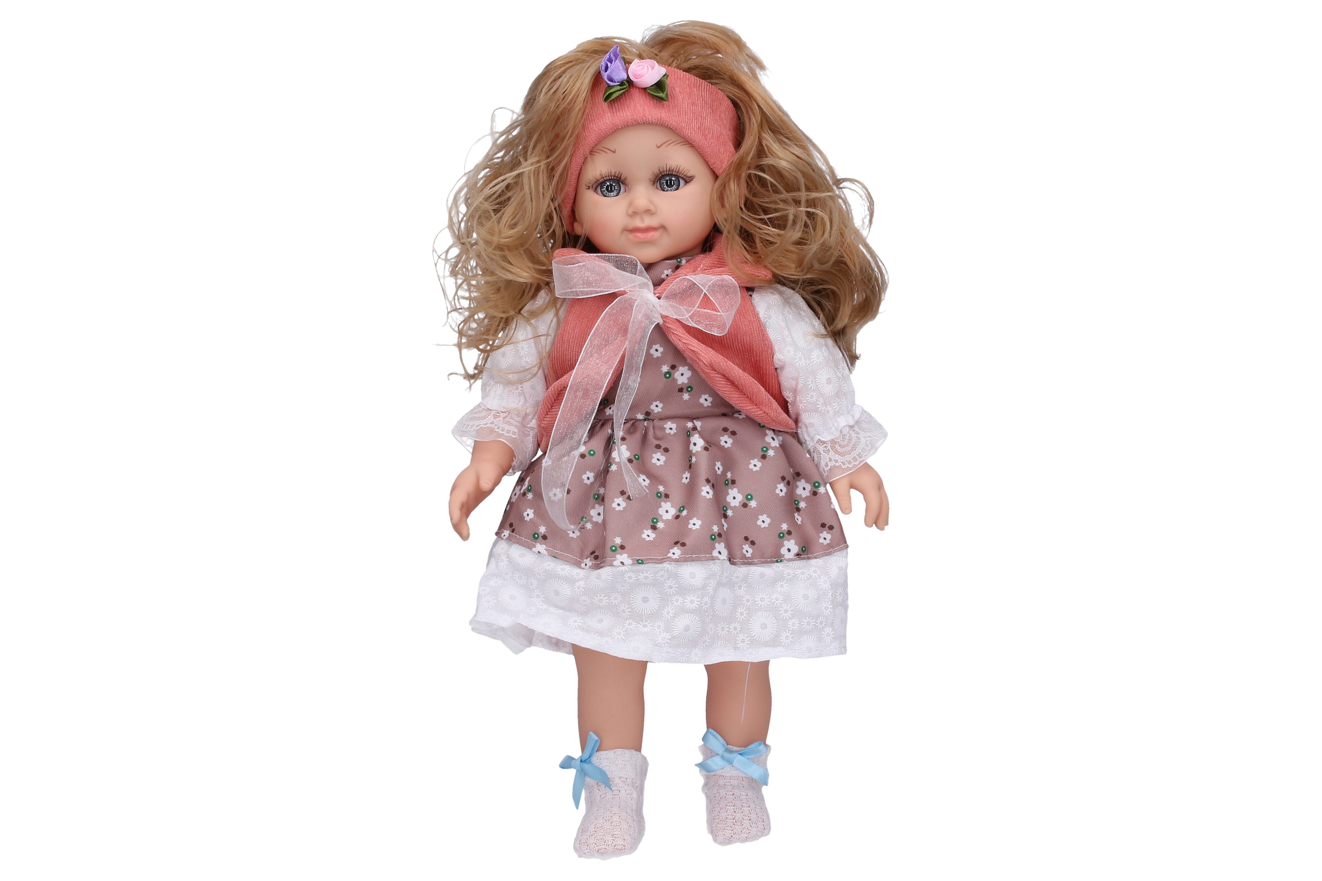 Panenka s mašlí. Měkké tělíčko. Rozměry 20x9x39 cm. 3xAG13 baterie součástí.