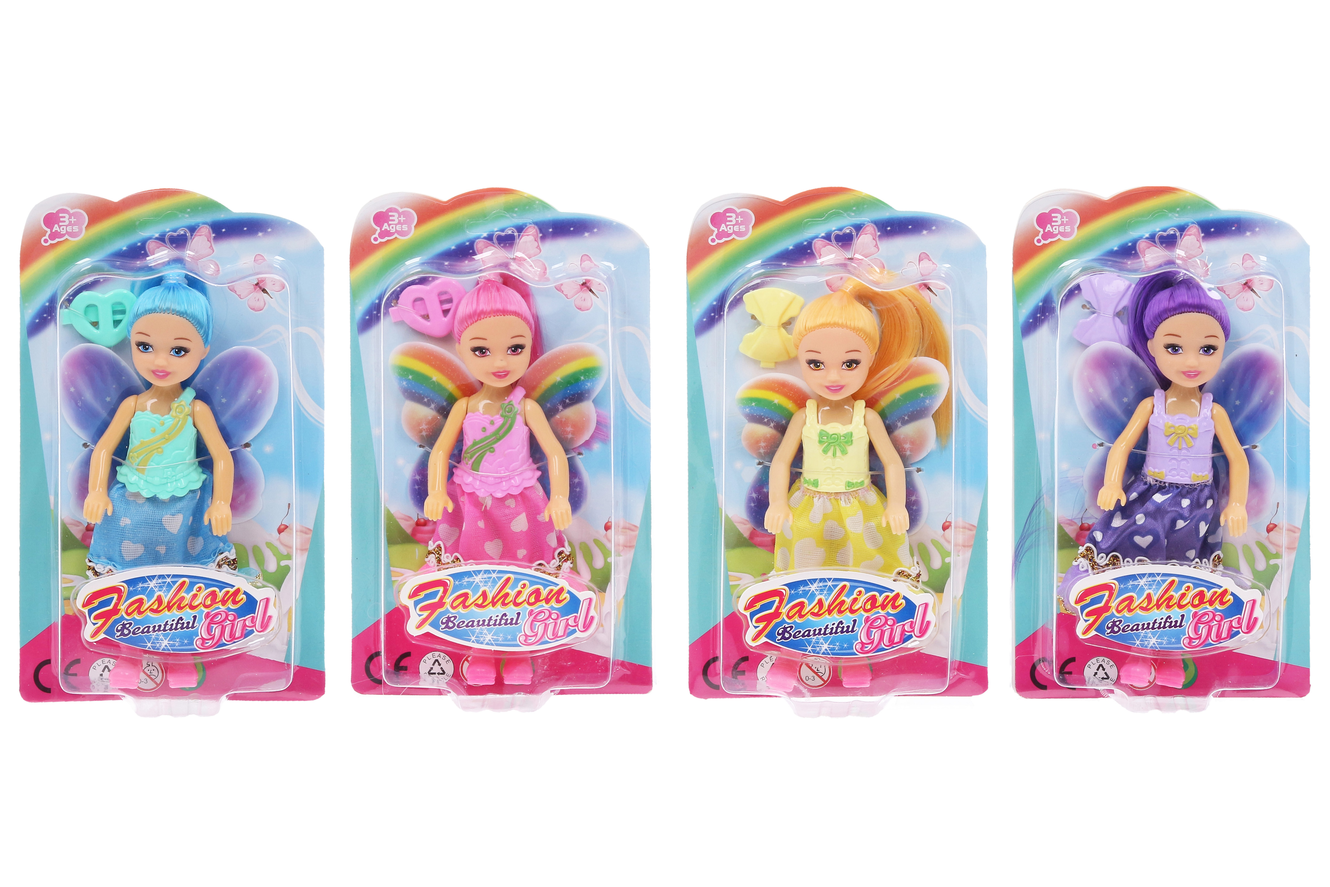 Panenka víla. Velikost 15 cm. 4 varianty - modrá, růžová, žlutá, fialová.