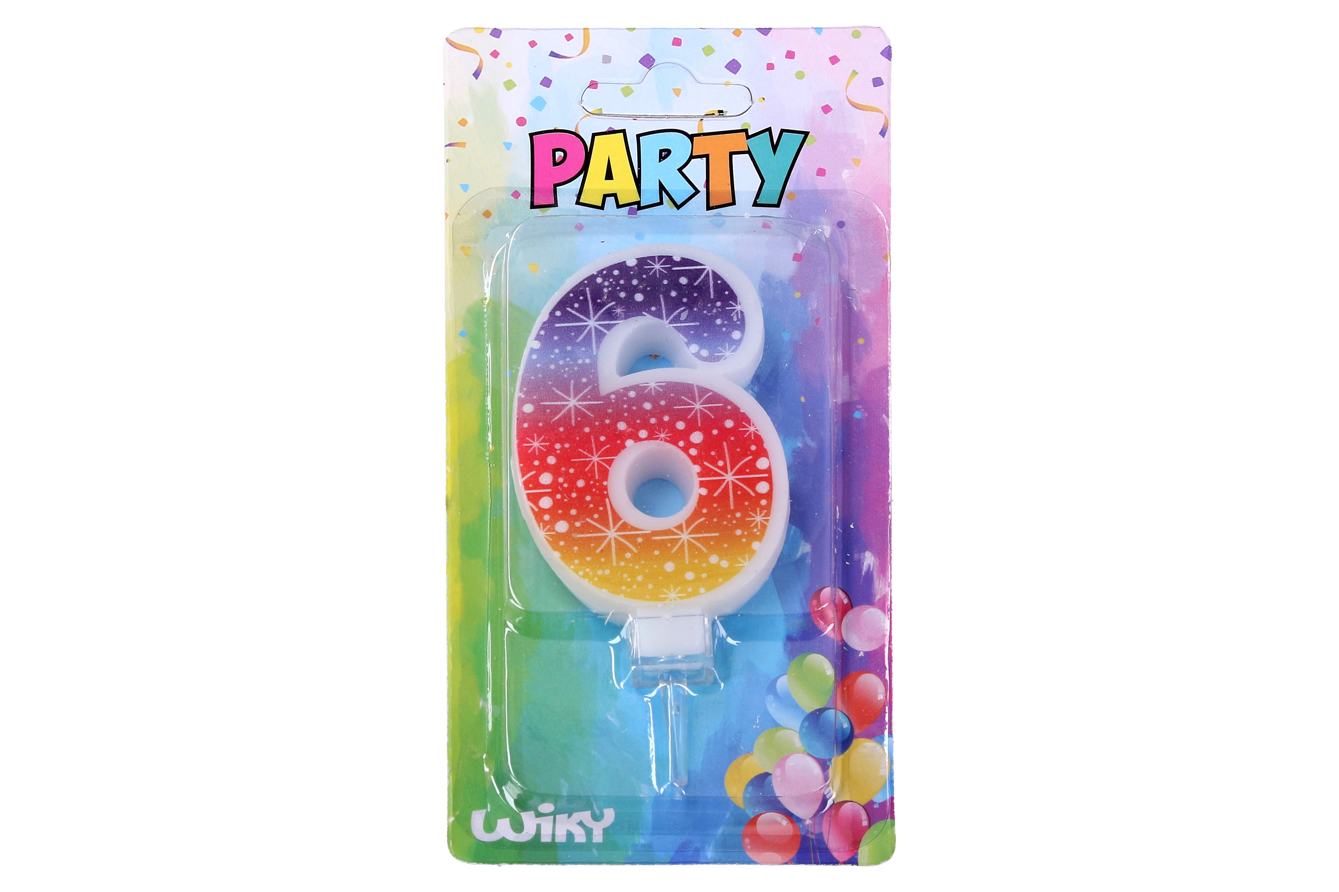 Párty svíčka ve tvaru čísla 6.