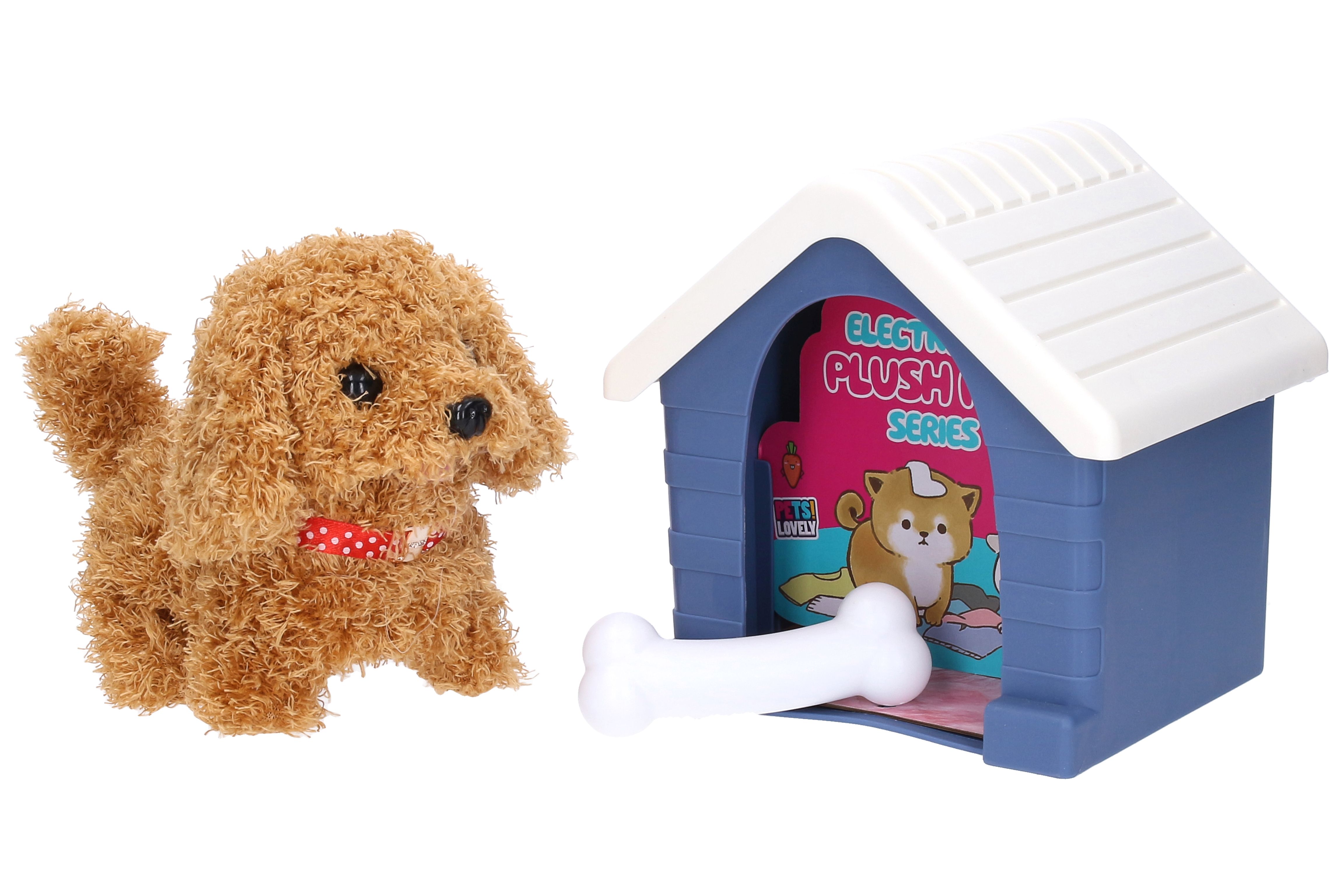 Pejsek s boudou. Velikost pejska 15cm. Velikost boudy 16cm. Obsahuje boudu, pejska, kost. 2xAA baterie nejsou součástí.