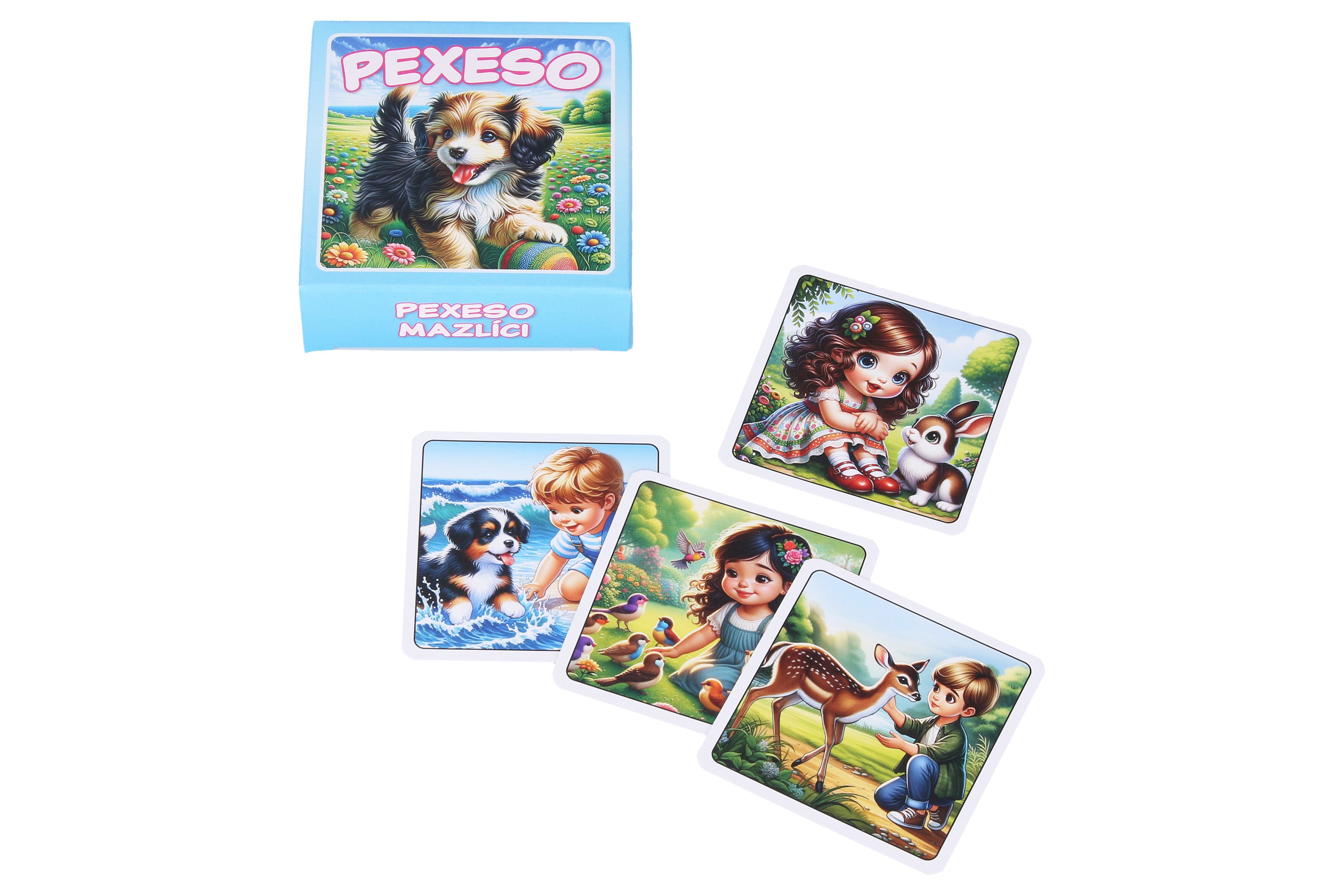 Pexeso Mazlíci v krabičce - modré. Balení obsahuje 64 karet (32 párů) + 2 karty s pravidly. Rozměr krabičky 8x8x2,5 cm.