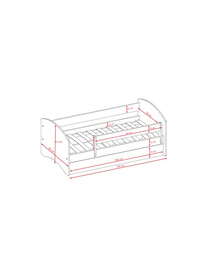 Jednolůžková postel se zábranou je vyrobena z kvalitní nábytkové desky o tloušťce 18 mm. Je dostupná v několika velikostech a barevných variantách. Pohádkové motivy zajišťují široký výběr a možnost personalizace.